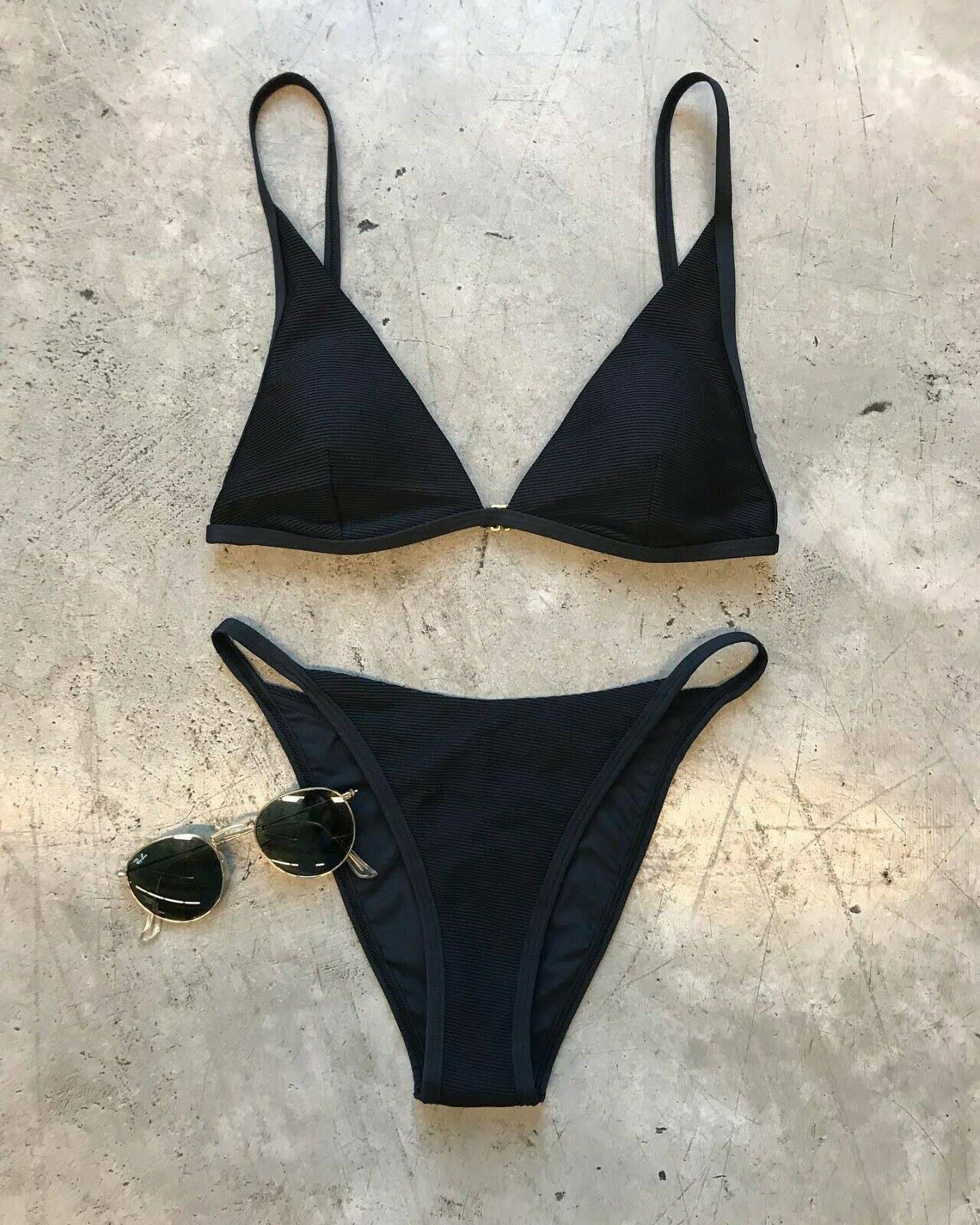 L*Space Swimwear Ridin High Black Ribbed Millie Fixed Triangle Bikini Top (L) Nw - Avayadevconnect