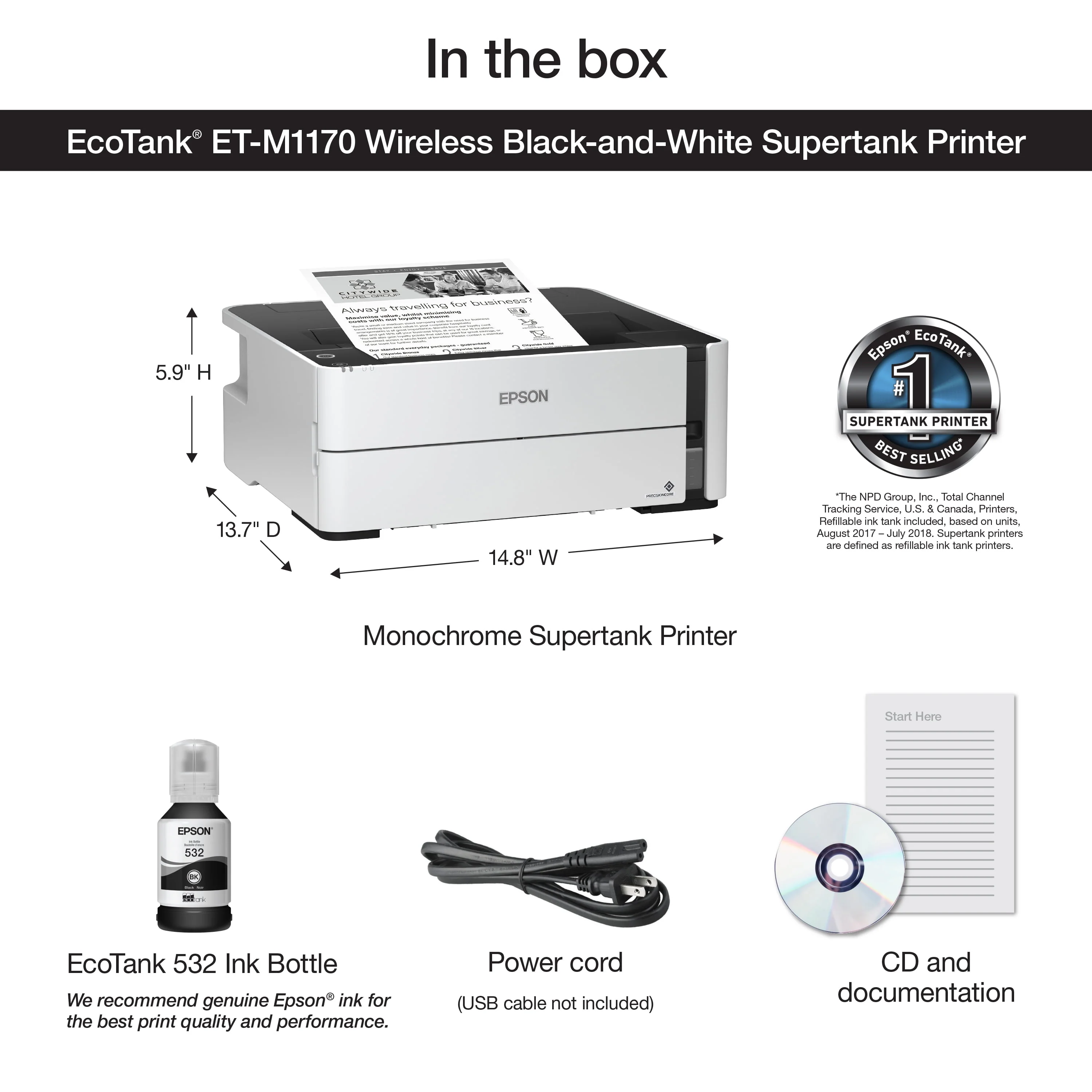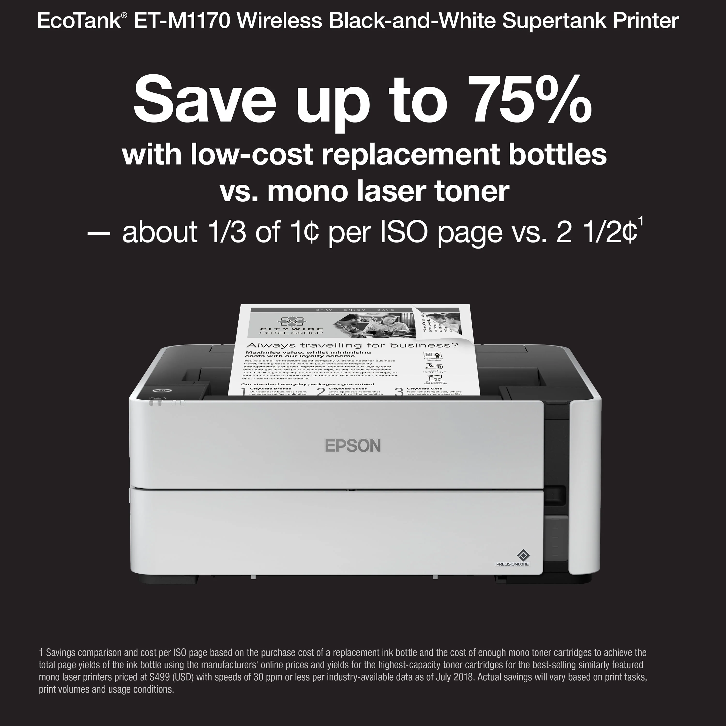 Epson EcoTank ET-M1170 Wireless Monochrome Supertank Printer, Plus Ethernet