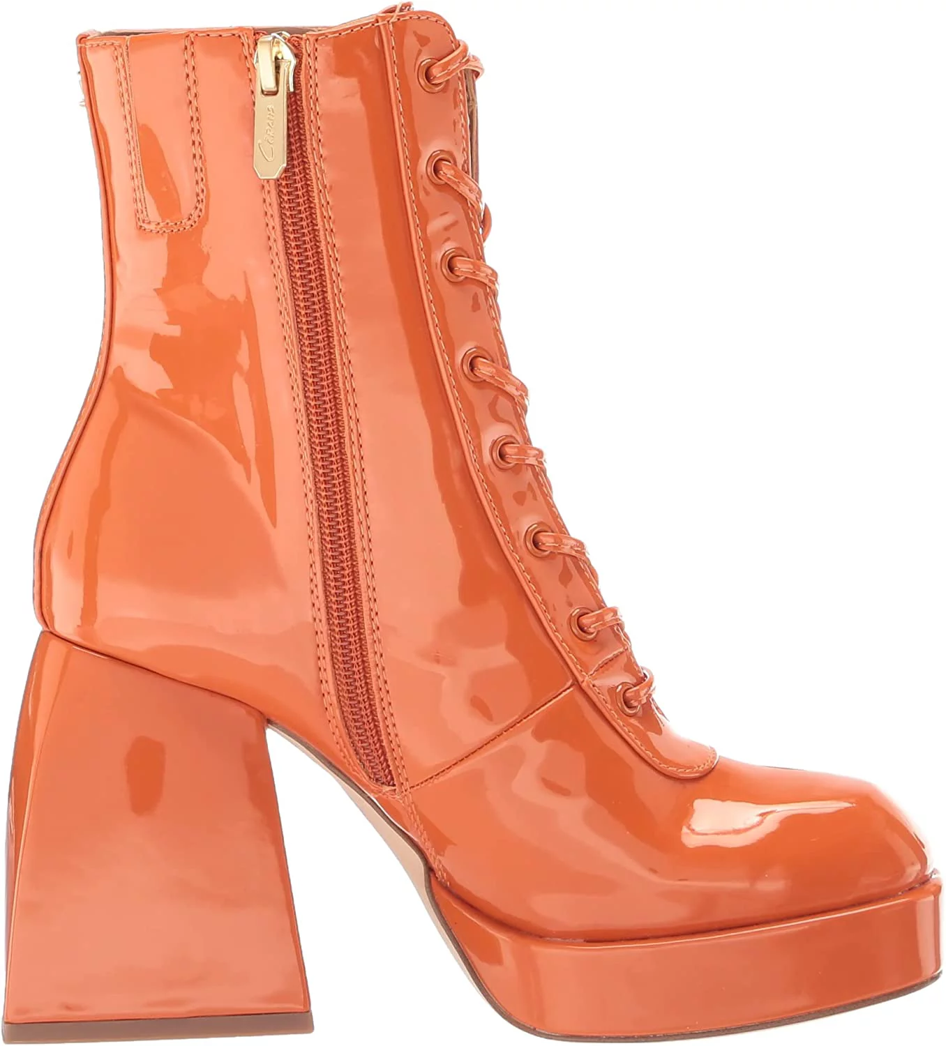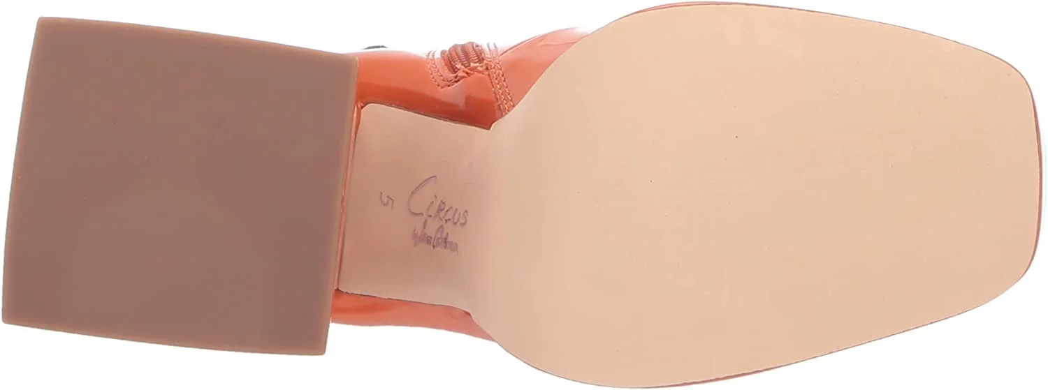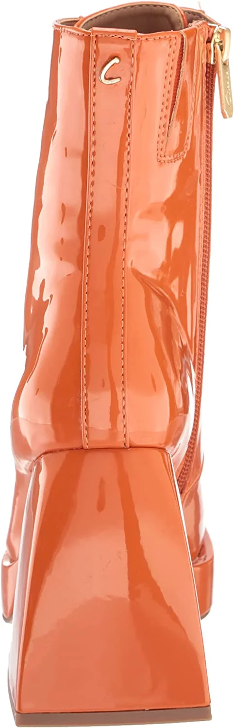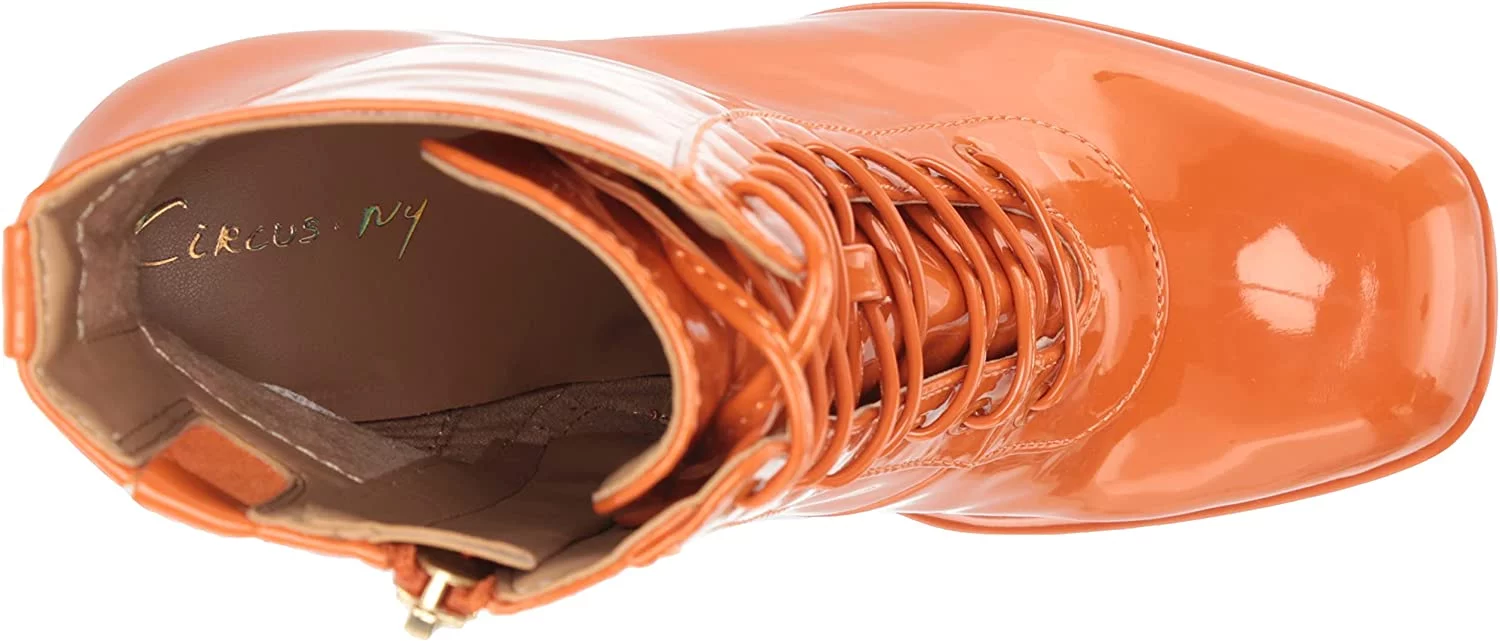 Circus by Sam Edelman Kia Orange Patent Lace Up Round Toe Chunky Block Heel Boot (Orange Patent, 6.5) - Curated Treasures Market