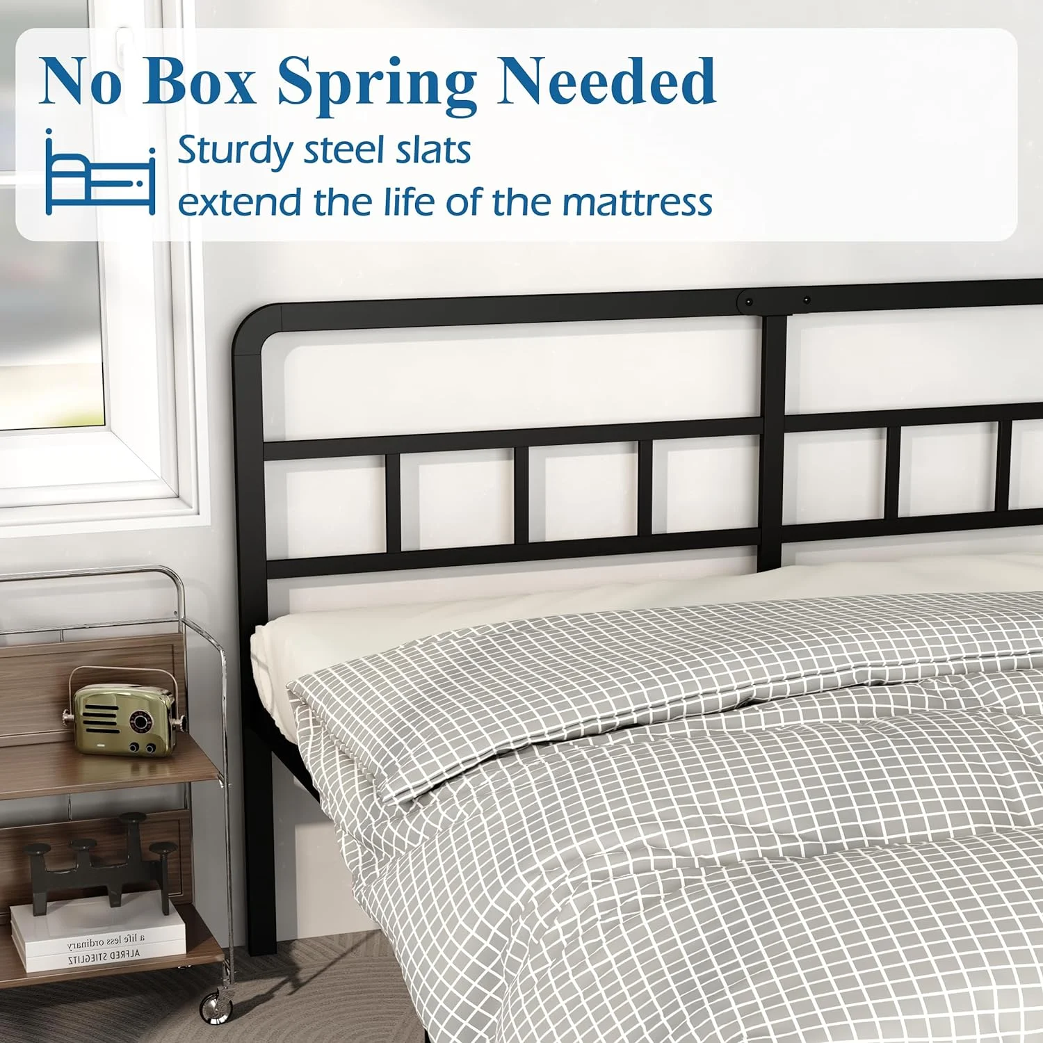 GrandRest 18" Adult Modern Dura Steel Slat Bed Frame, Non-Slip, King - Curated Treasures Market