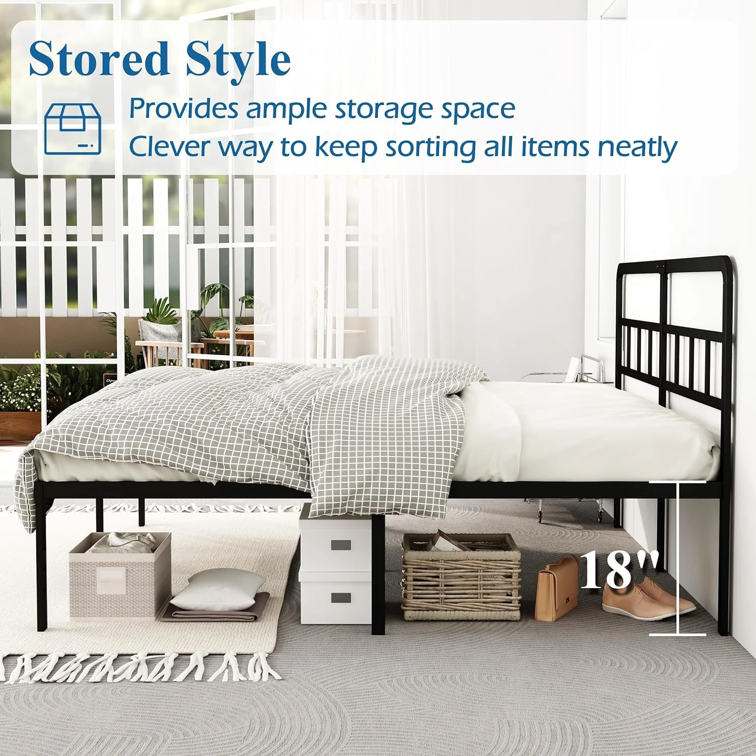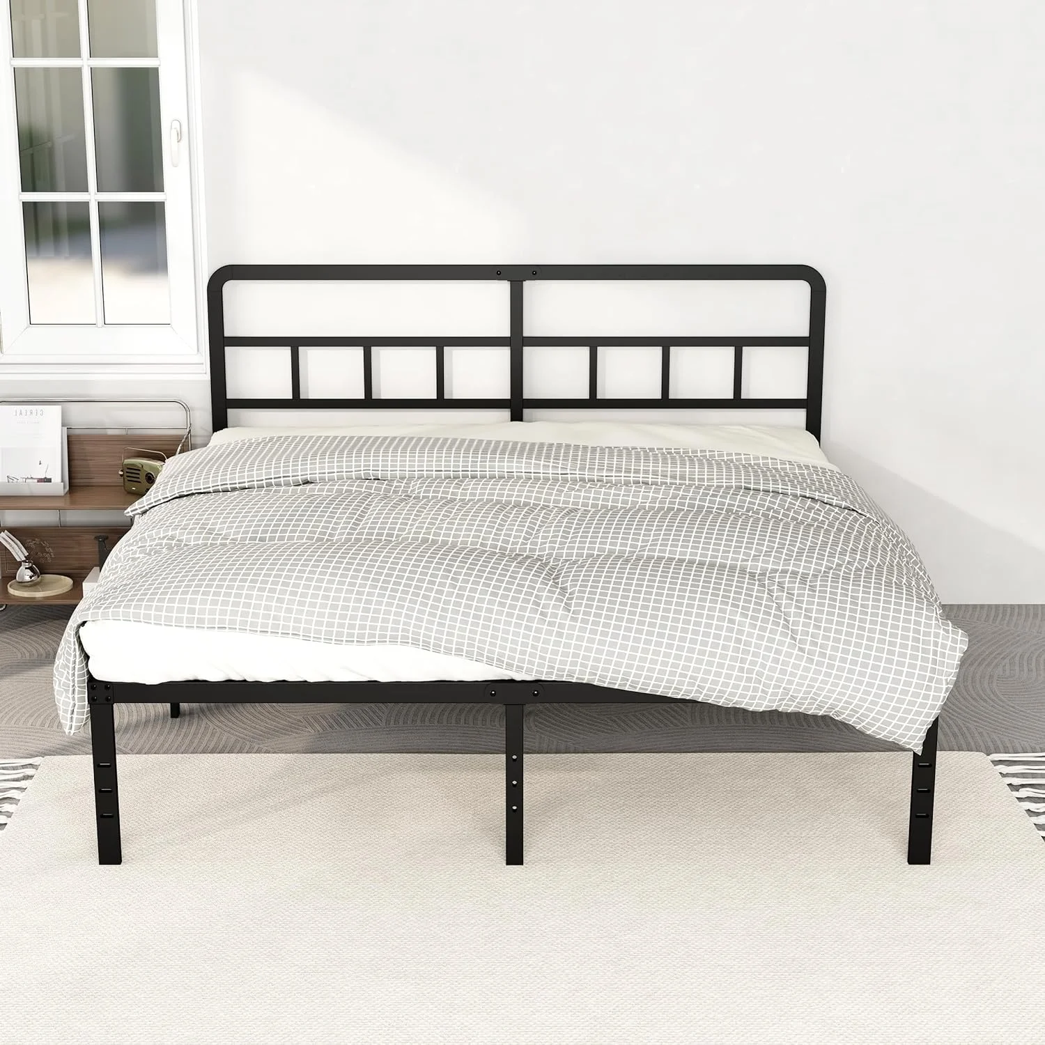 Lutown-Teen King Size Bed Frame with Headboard, 18 Inch Metal Platform No Box Spring Needed Heavy Duty Steel Slat Mattress Foundation/Easy Assembly/Noise Free/Black - Curated Treasures Market
