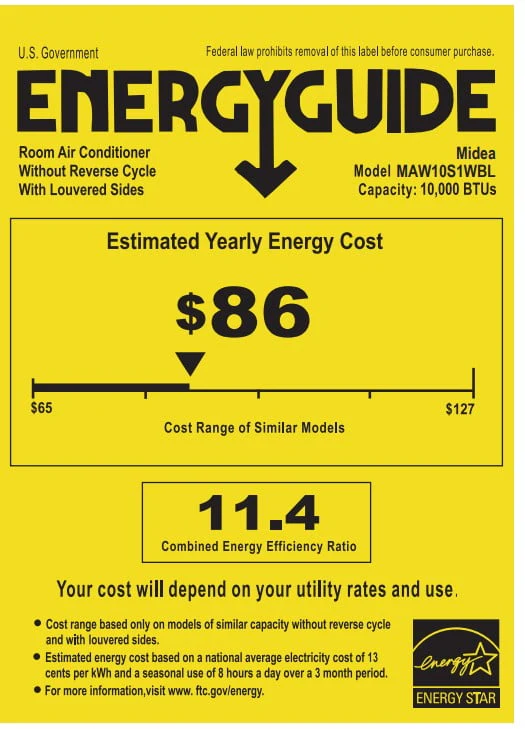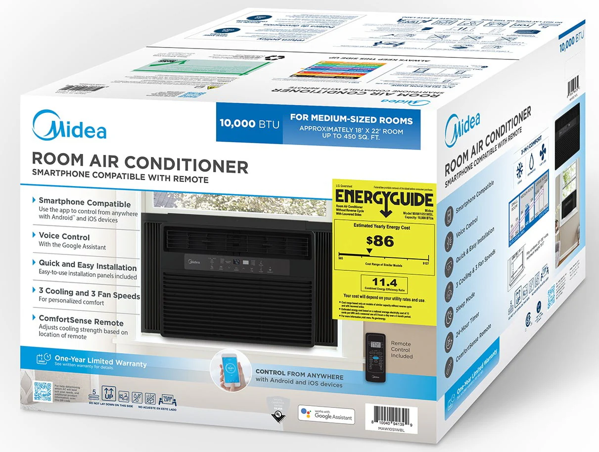 Midea 10,000 BTU 115V Smart Window AC with Comfort Sense Remote, White, MAW10S1WWT-T