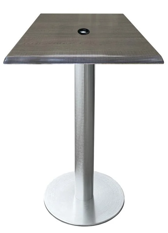 Indoor/Outdoor 36" Tall OD219 Brushed Aluminum Table Base with 18" Diameter Foot and 36" x 36" Square Indoor/Outdoor Charcoal Top with Umbrella Hole - Curated Treasures Market