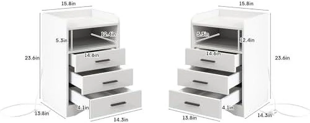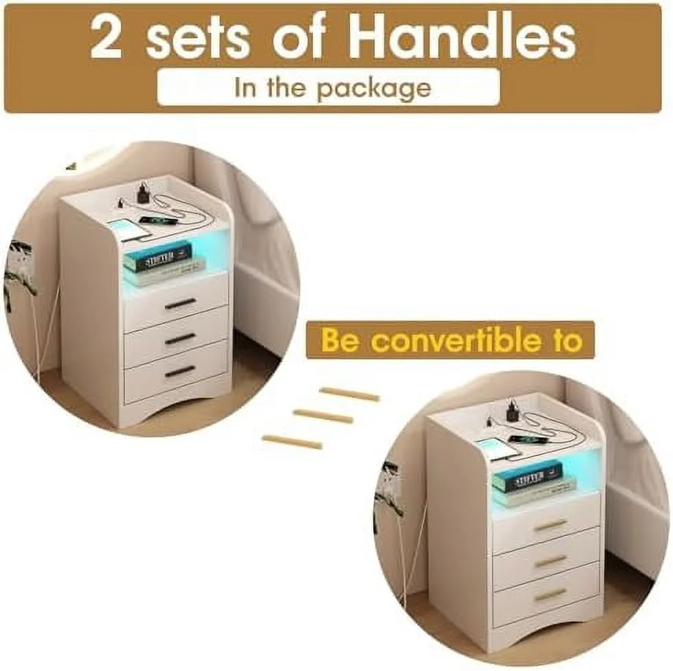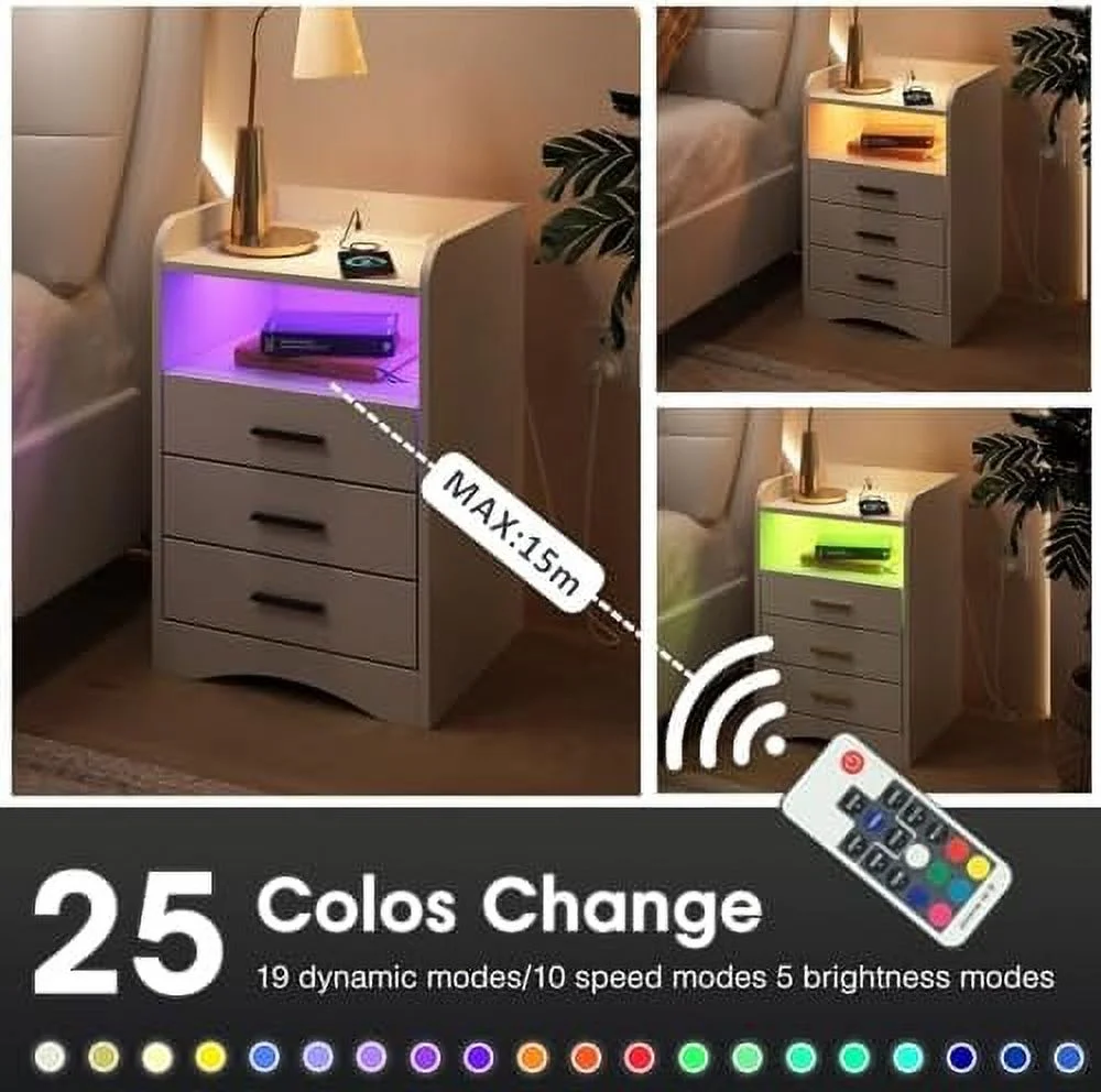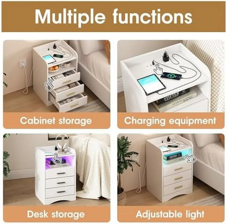 xrboomlife Multi-Functional White Nightstand with Charging Station and LED Lighting 3 Drawers and 2 Open Shelves Suitable for Bedroom and Living Room Bed - Curated Treasures Market