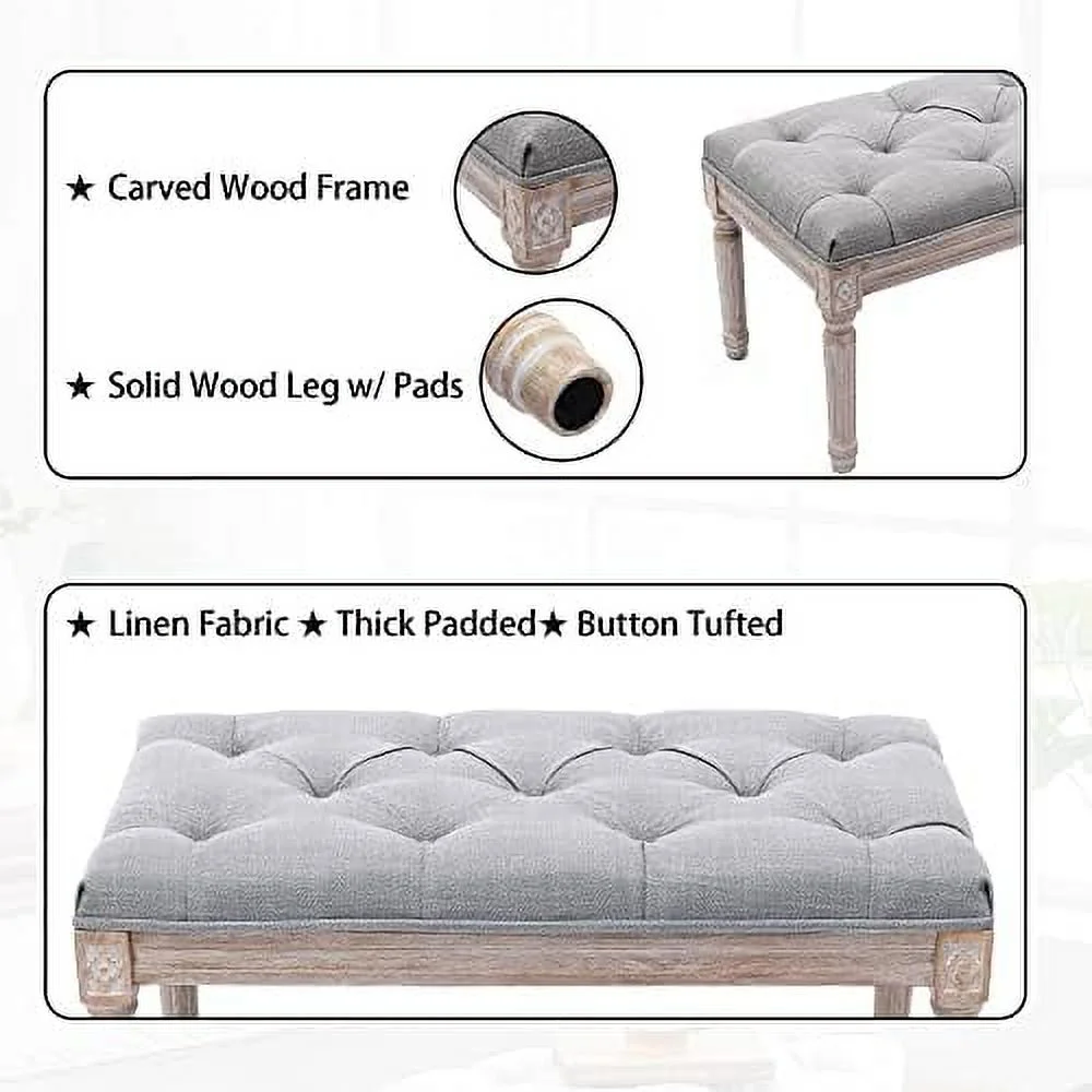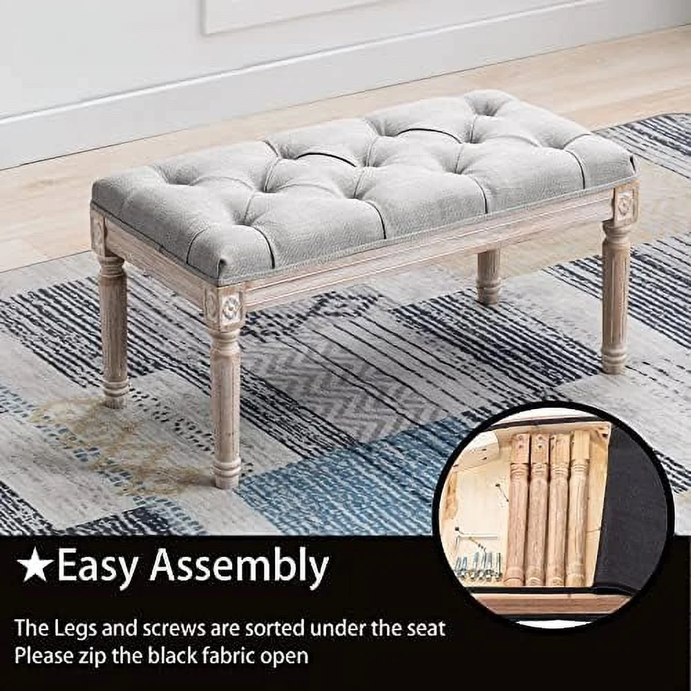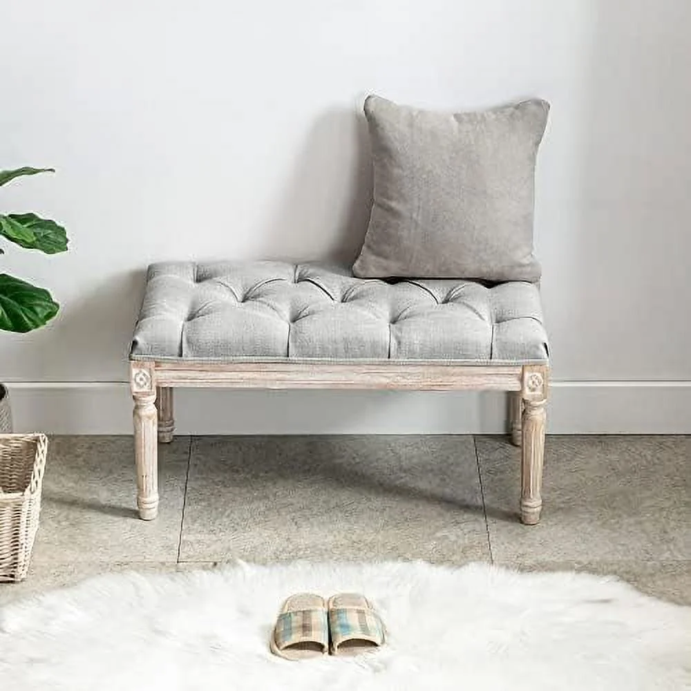 CHYTGBV Fabric Entryway Bench French Vintage Tufted Upholstered Bedroom Bench Cushion Small Bench Seat Beige - Curated Treasures Market