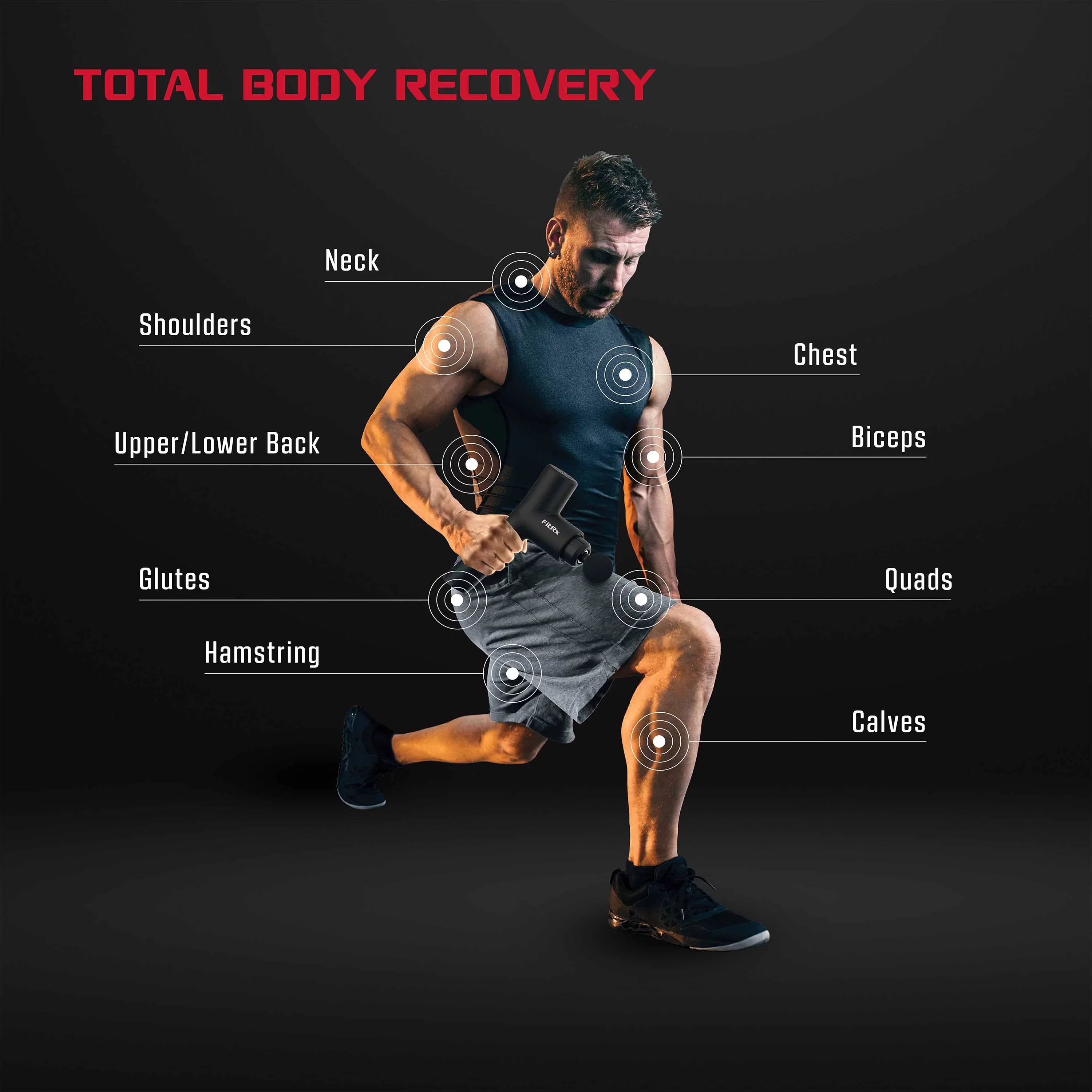 FitRx Neck and Back Massager, Handheld Percussion Massage Gun with Multiple Speeds and Attachments