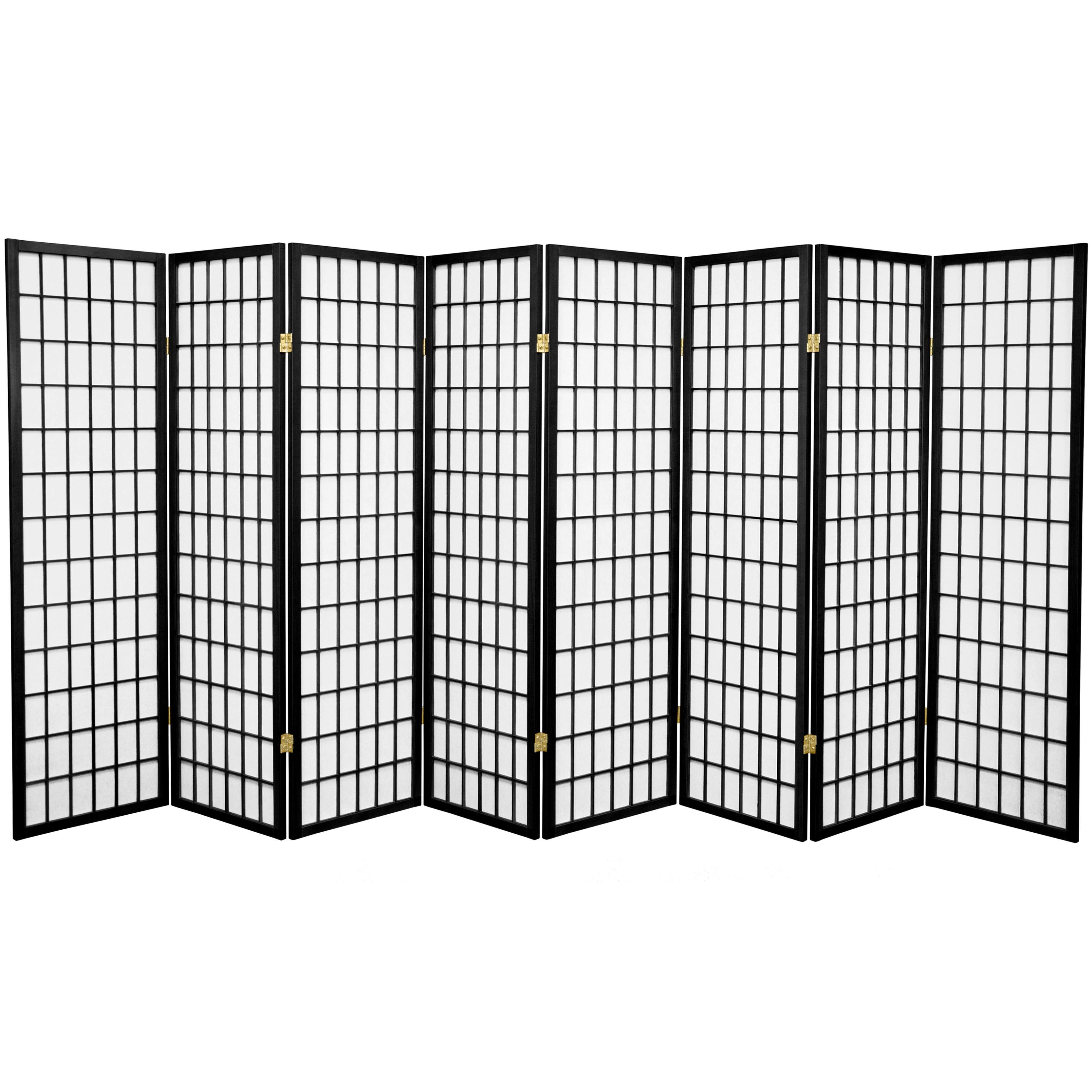 Oriental Furniture 5 ft. Tall Window Pane Shoji Screen - 8 Panel - Black - Megean