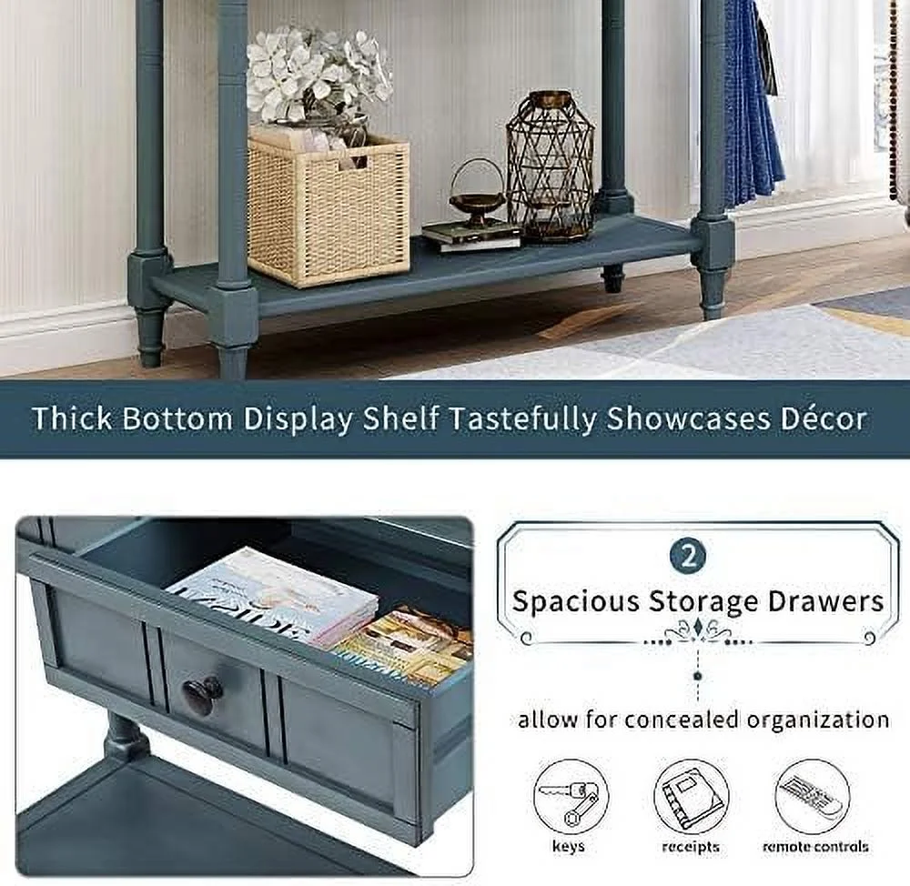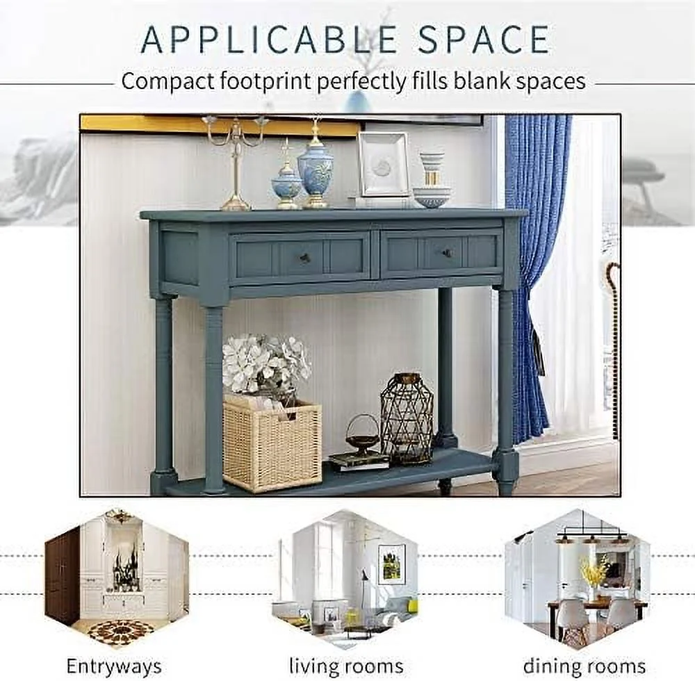HBBOOMLIFE Entryway Table with Solid Wood Legs Console Table Traditional Design with Two Drawers and Bottom Sofa Table Long Narrow Hallway Table Small Space Console End Table (Ivory) - Curated Treasures Market