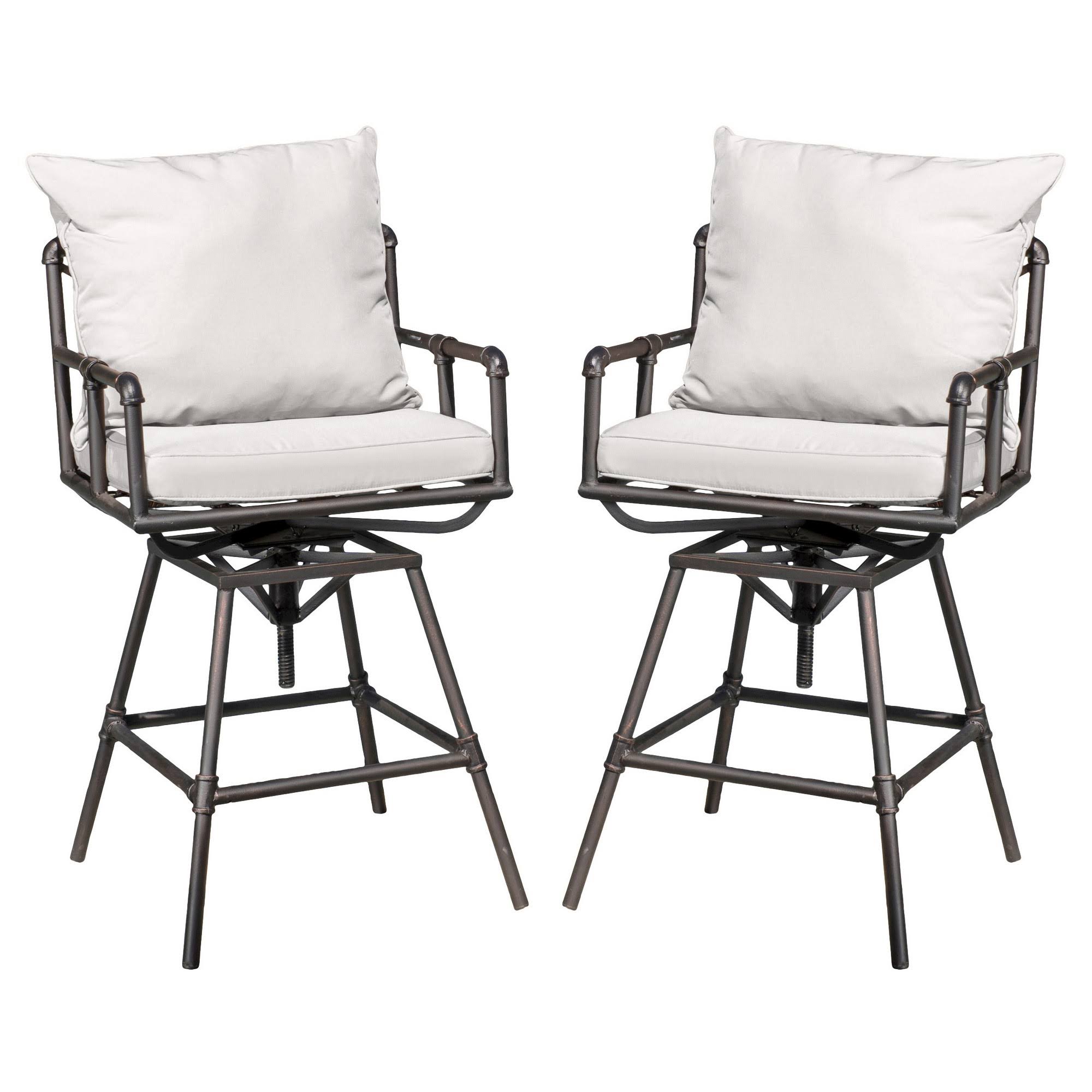 Northrup Pipe Set of 2 Iron Adjustable Barstool with Cushion - Black - Megean