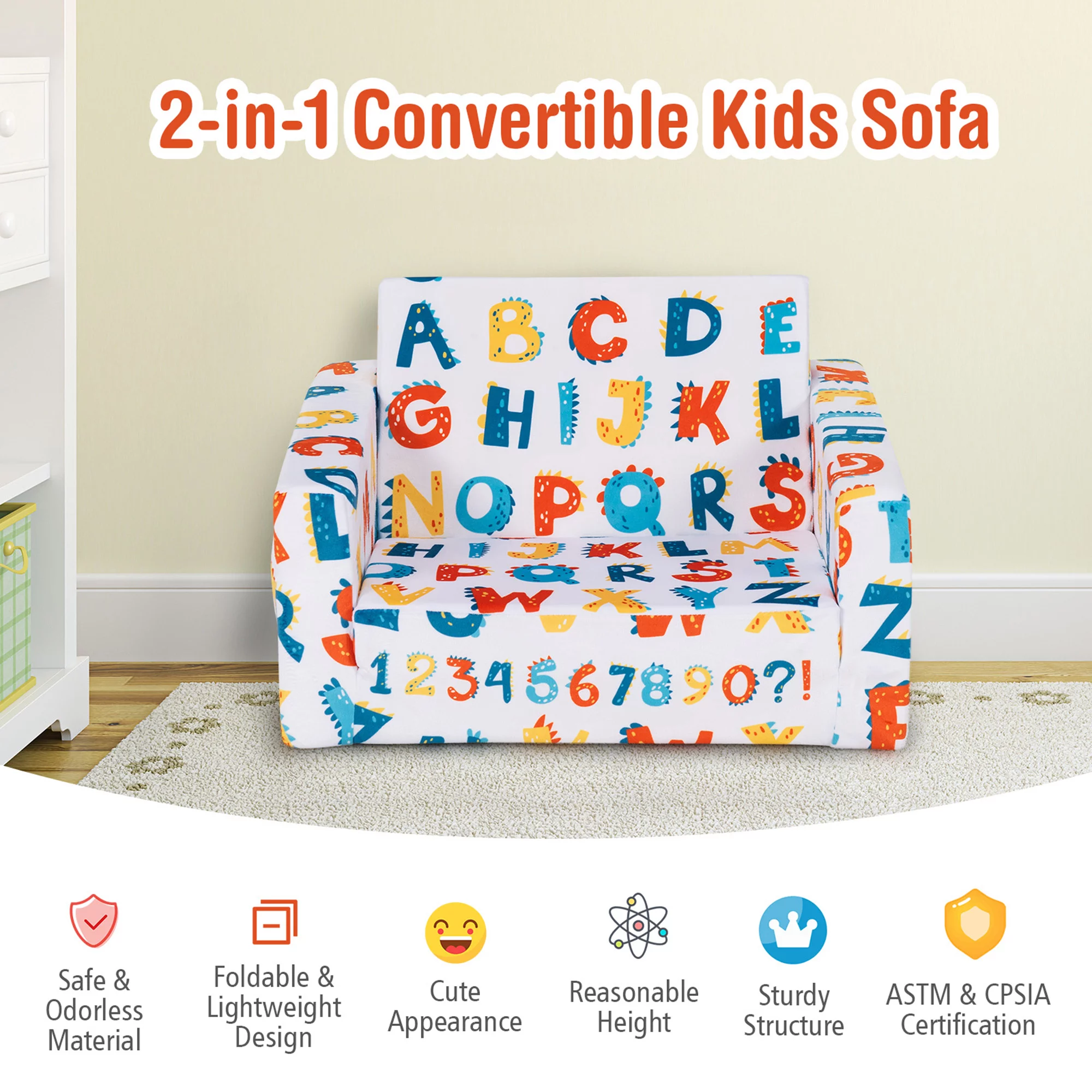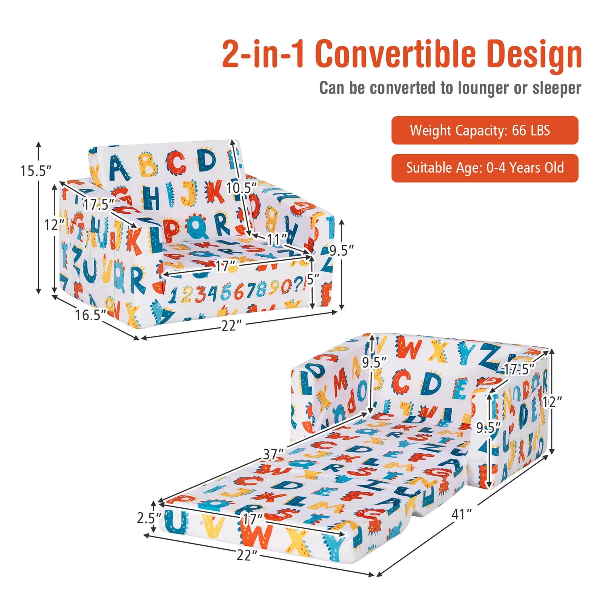 Gymax 2 in 1 Kids Convertible Sofa Children Flip-out Chair Lounger Couch Sleeper