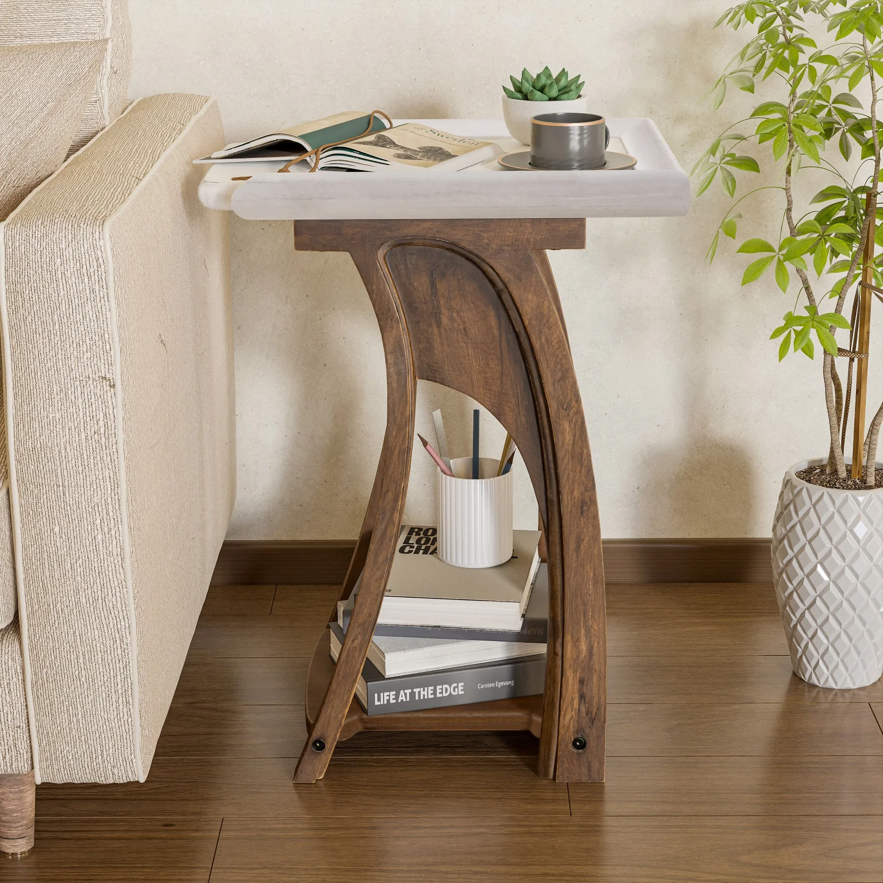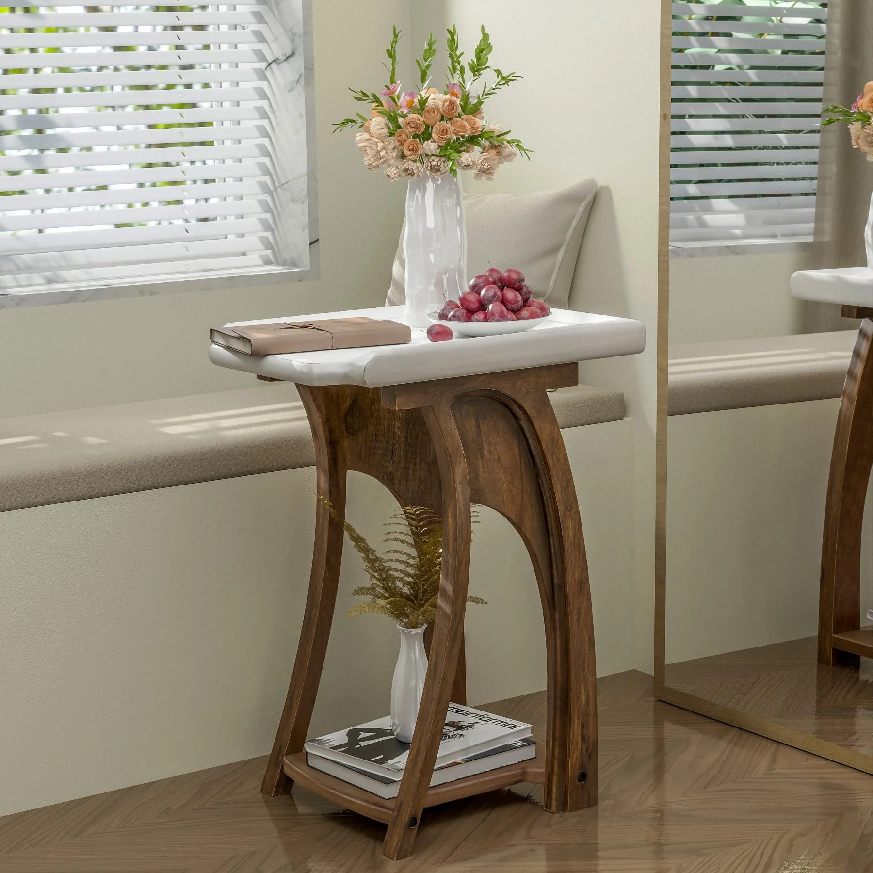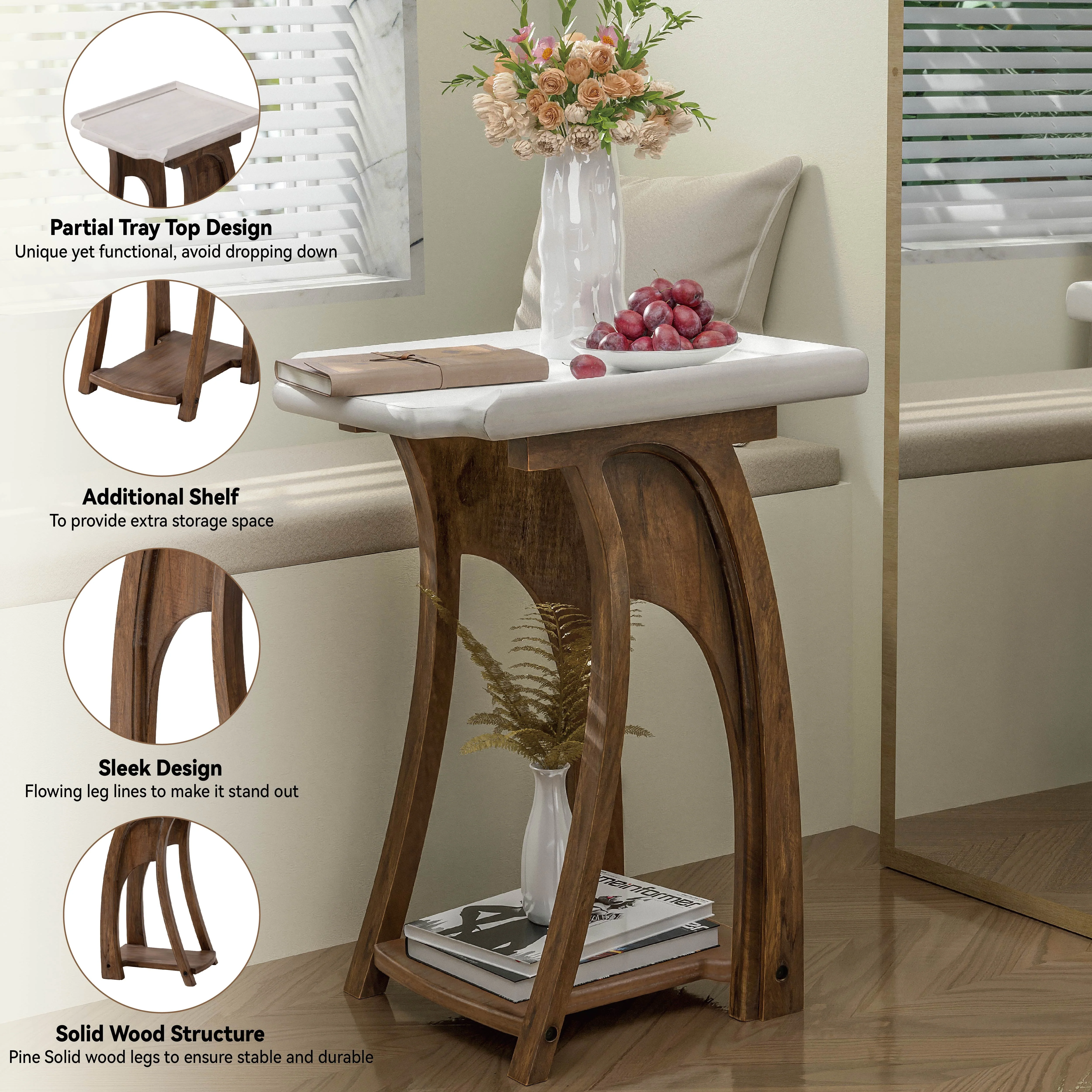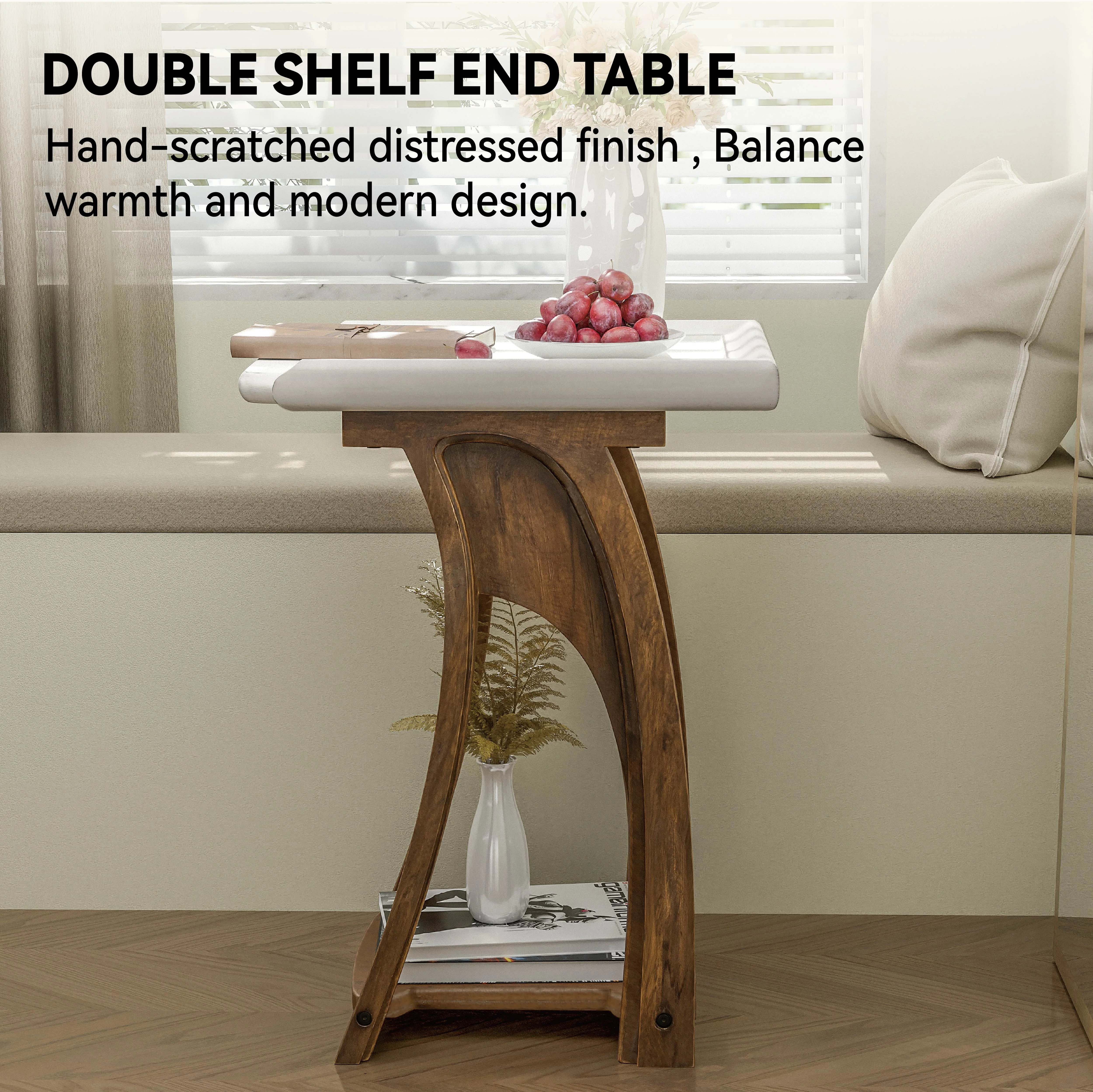 COZAYH Rustic Farmhouse Accent End Table, Tray Top Side Table French Country Decor for Family, Living Room, Distressed Base, Boho, White&Brown, Rectangle