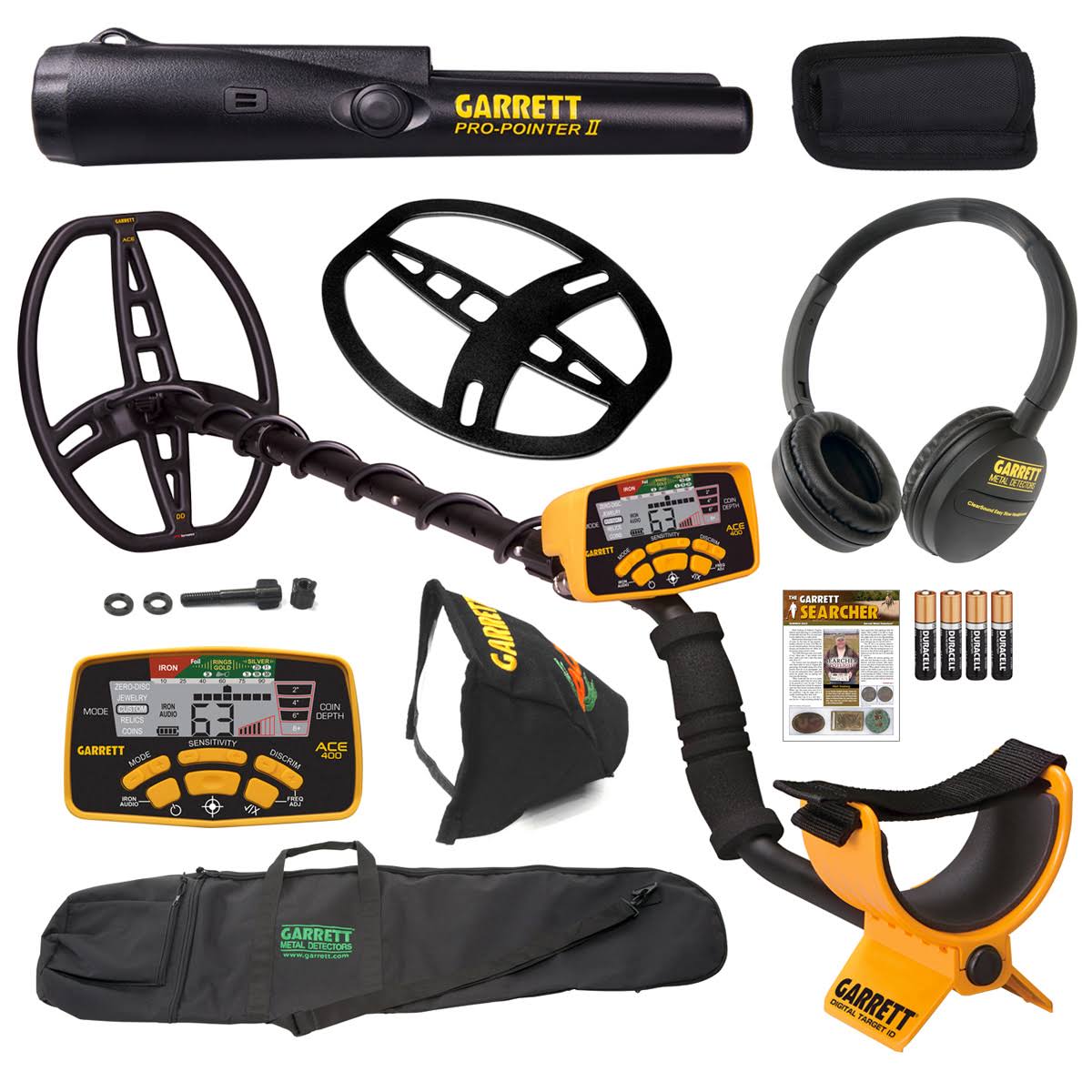 Garrett Ace 400 Metal Detector with Waterproof Coil Pro-Pointer II and Carry Bag - Megean