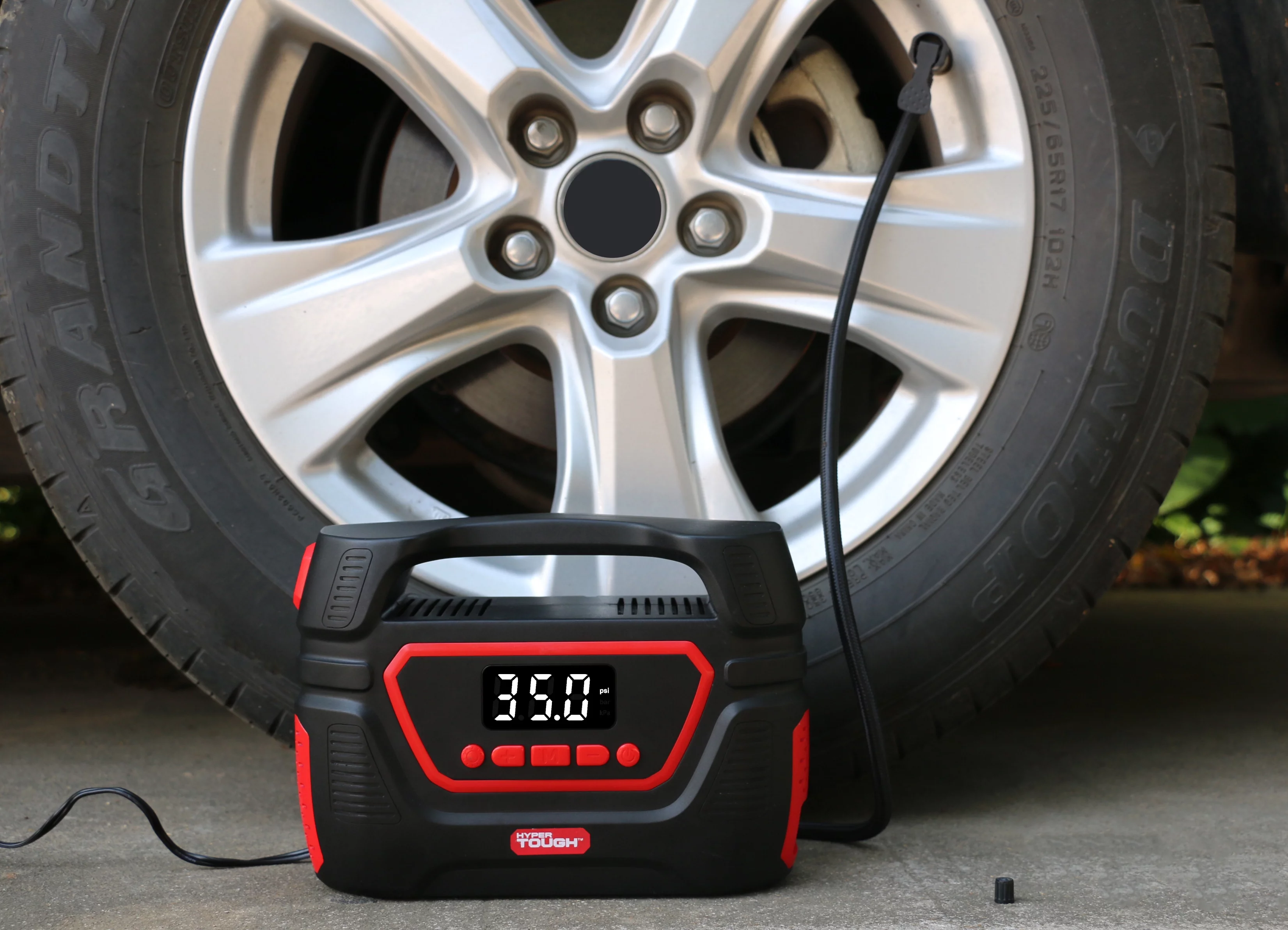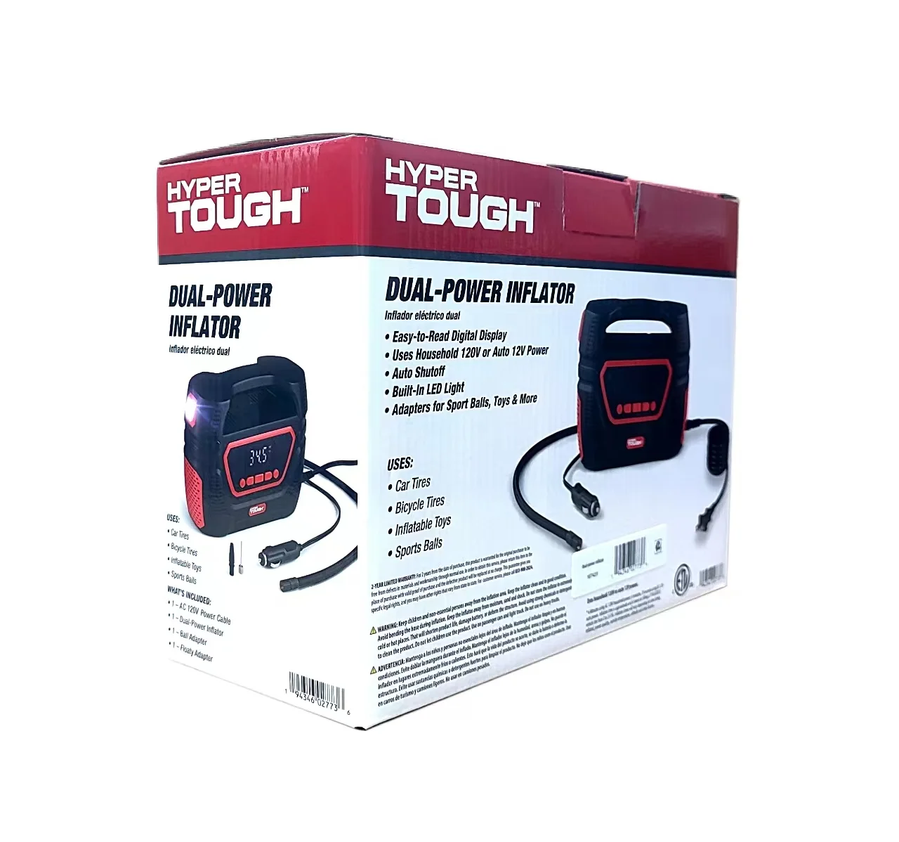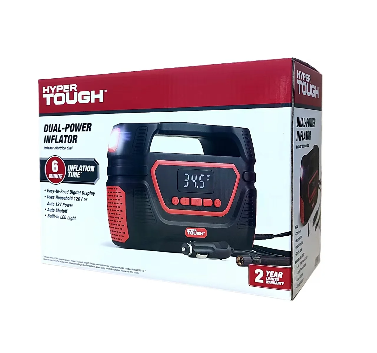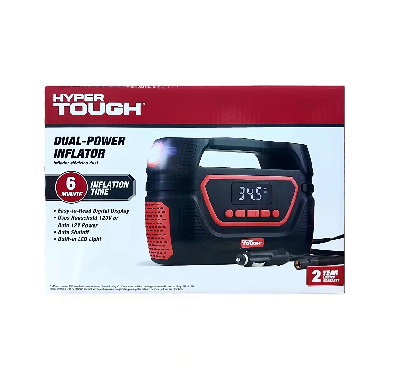 Hyper Tough Dual Power Digital Inflator for P195/65R15 Car Tire, Car-DC 12V or Home-AC 120V