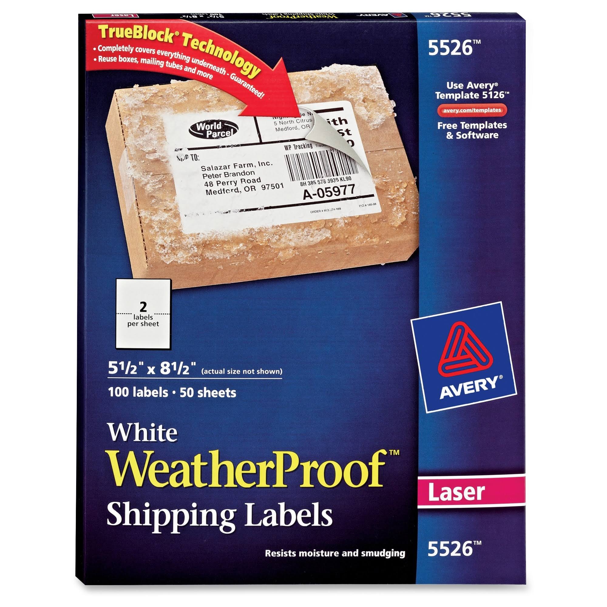 Avery 5526 Weatherproof Shipping Labels, 5-1/2 x 8-1/2 Inches, White, Pack of 100 - Megean