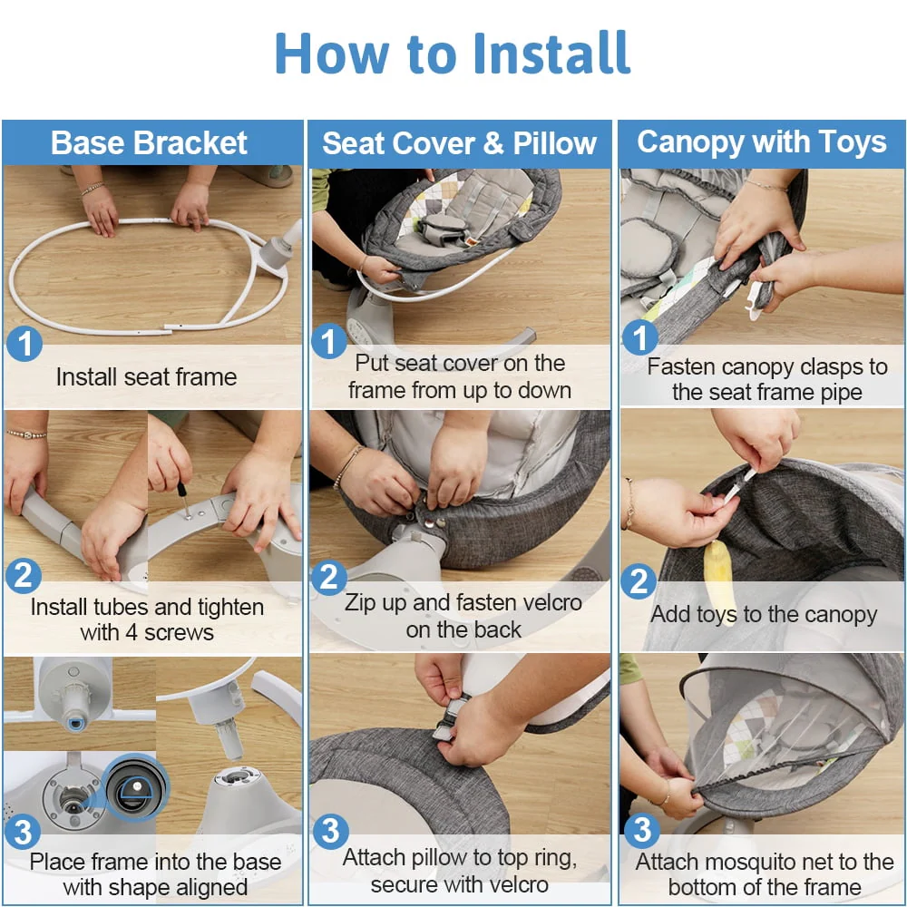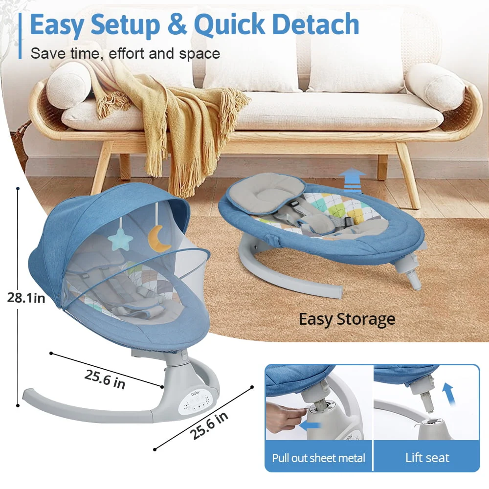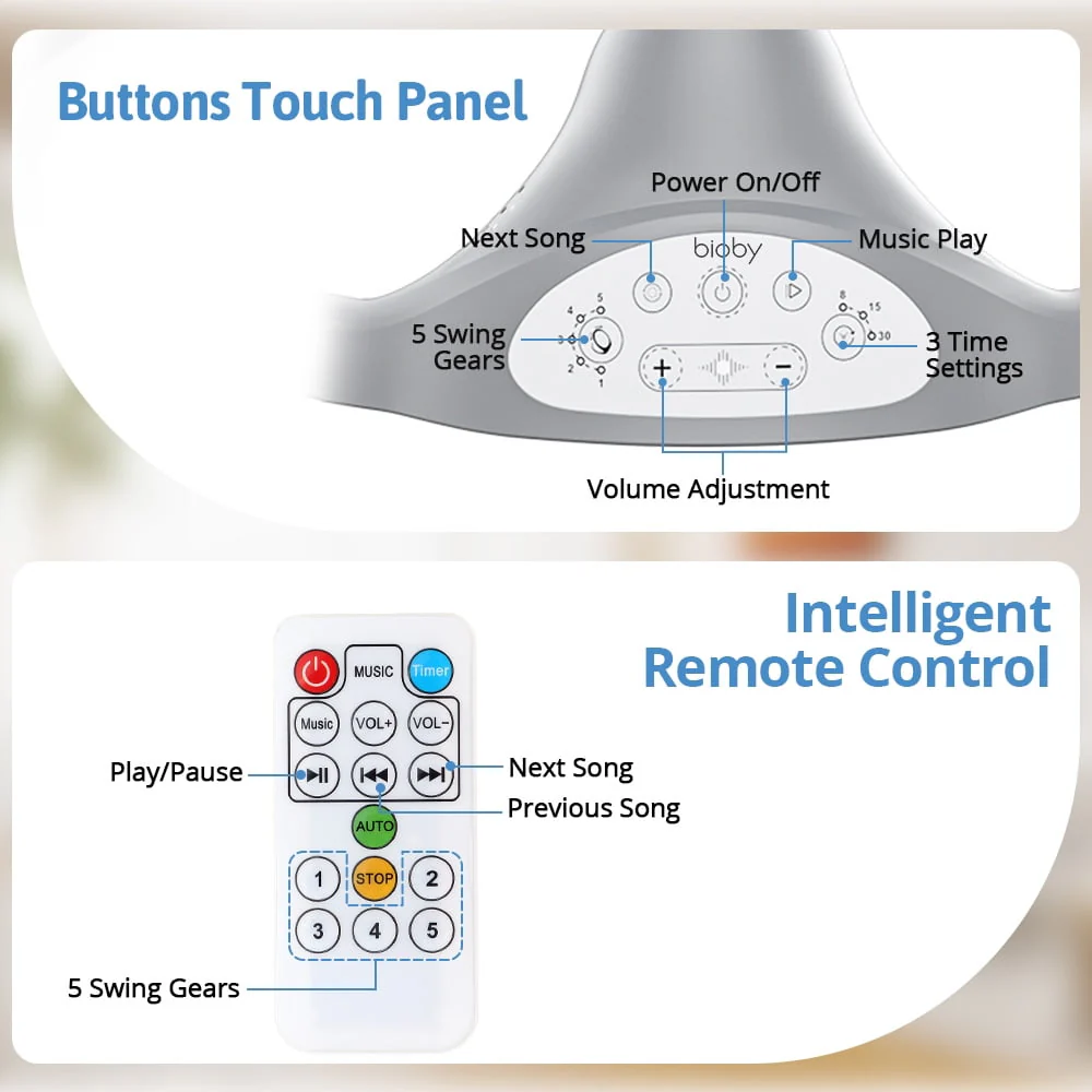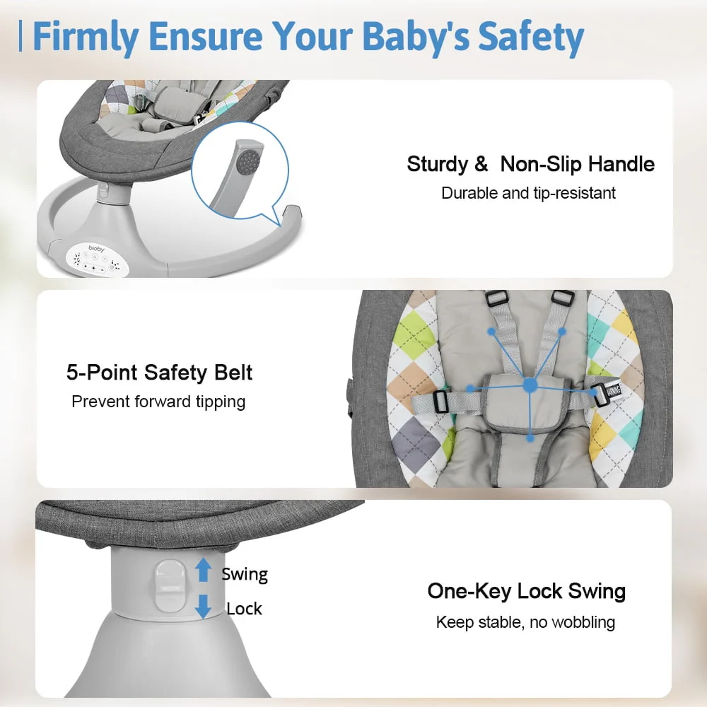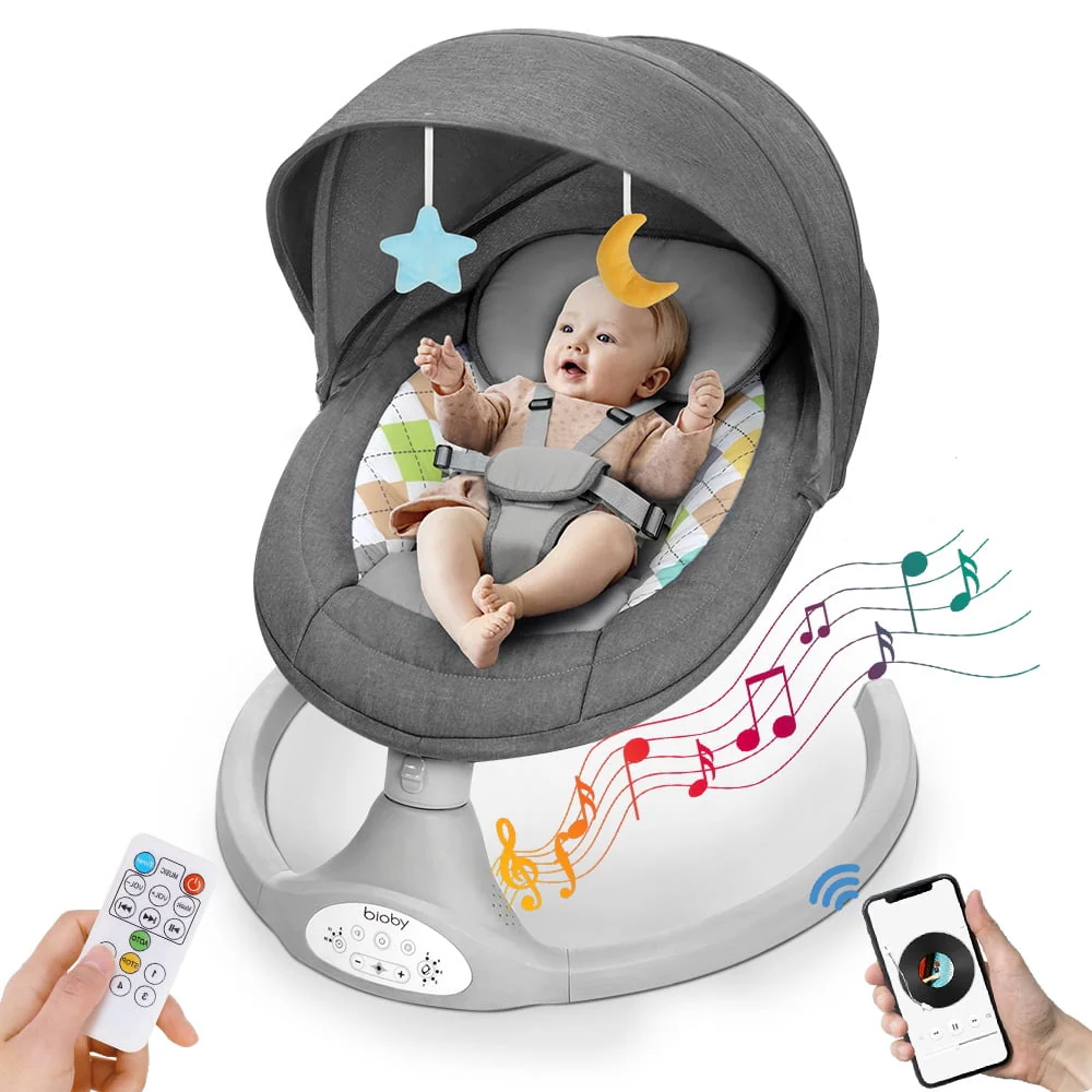 Electric Baby Swing, Bioby Infant Swing Chair Rocker with Remote Control, 5 Swing Speeds, Seat Belt, Bluetooth Music, Grey