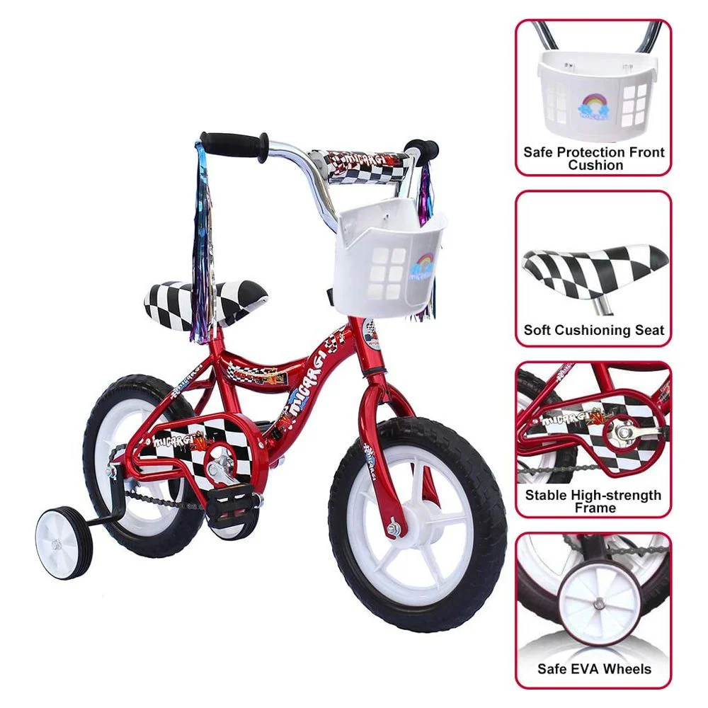 PlayWorld 12 Kid's Beginner Bicycle for 2-4 Years Old Boys' and Girls' Bike Foam Tire for Indoor Use No Brake - Black