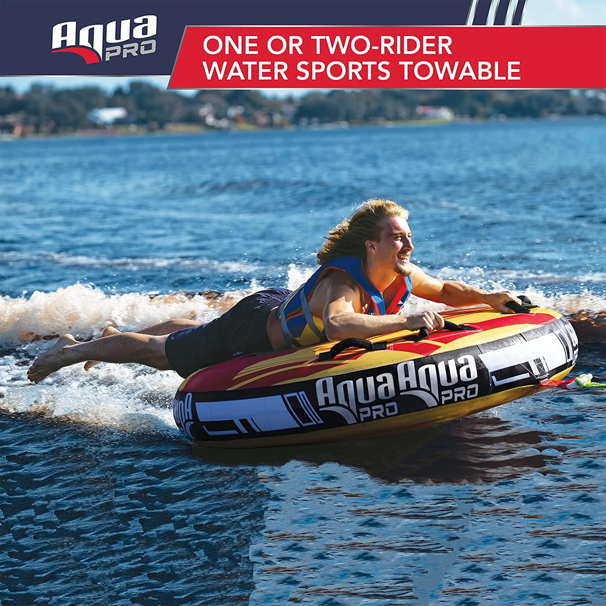 AquaPro Heavy Duty Inflatable Deck Style Raft, Yellow and Red (2 Pack)