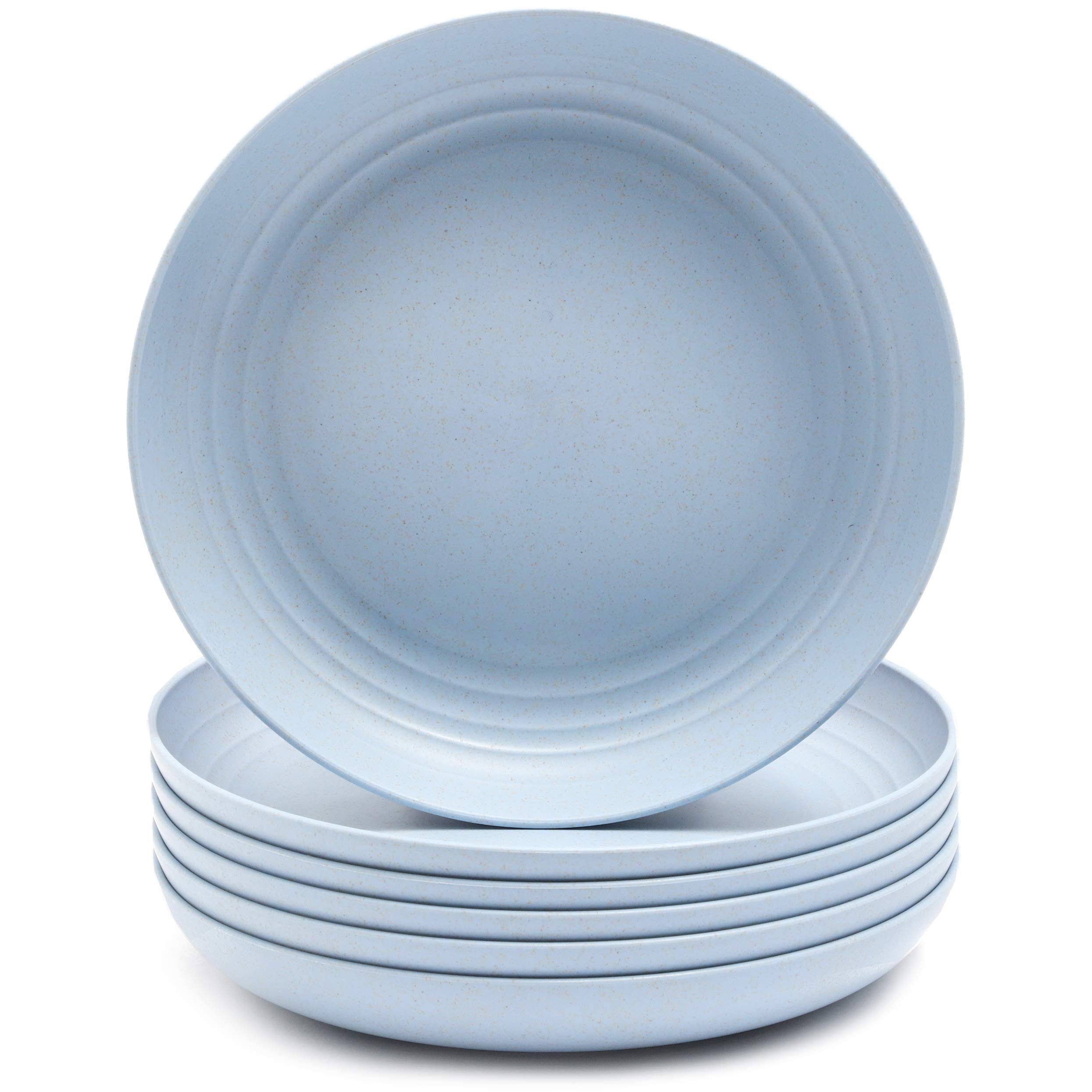 6-Pack Wheat Straw Plates 8.75" Unbreakable Dishwasher & Microwave Safe Eco-Friendly Tableware, Blue - Megean