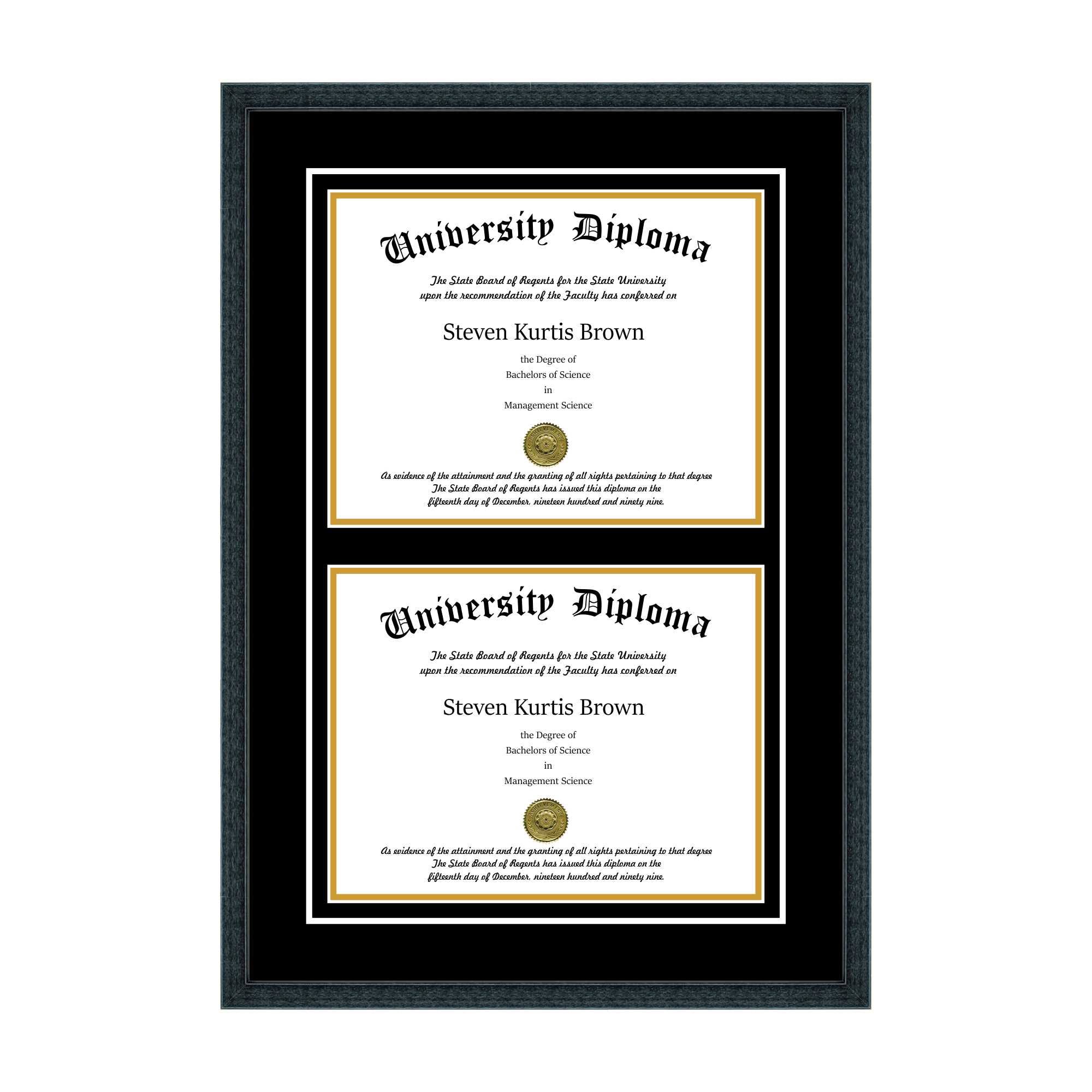 Perfect Cases and Frames Double Diploma Frame with Double Matting for 10x22 x 8x22 Tall Diploma with Black 3/4x22 Frame - Avayadevconnect