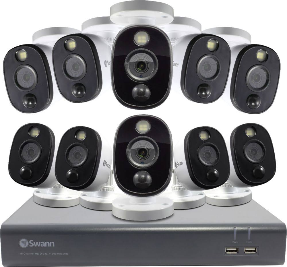 Swann - 16-Channel, 10-Camera Indoor/Outdoor Wired 1080p 1TB DVR Surveillance System - Black/Gray/White - Megean