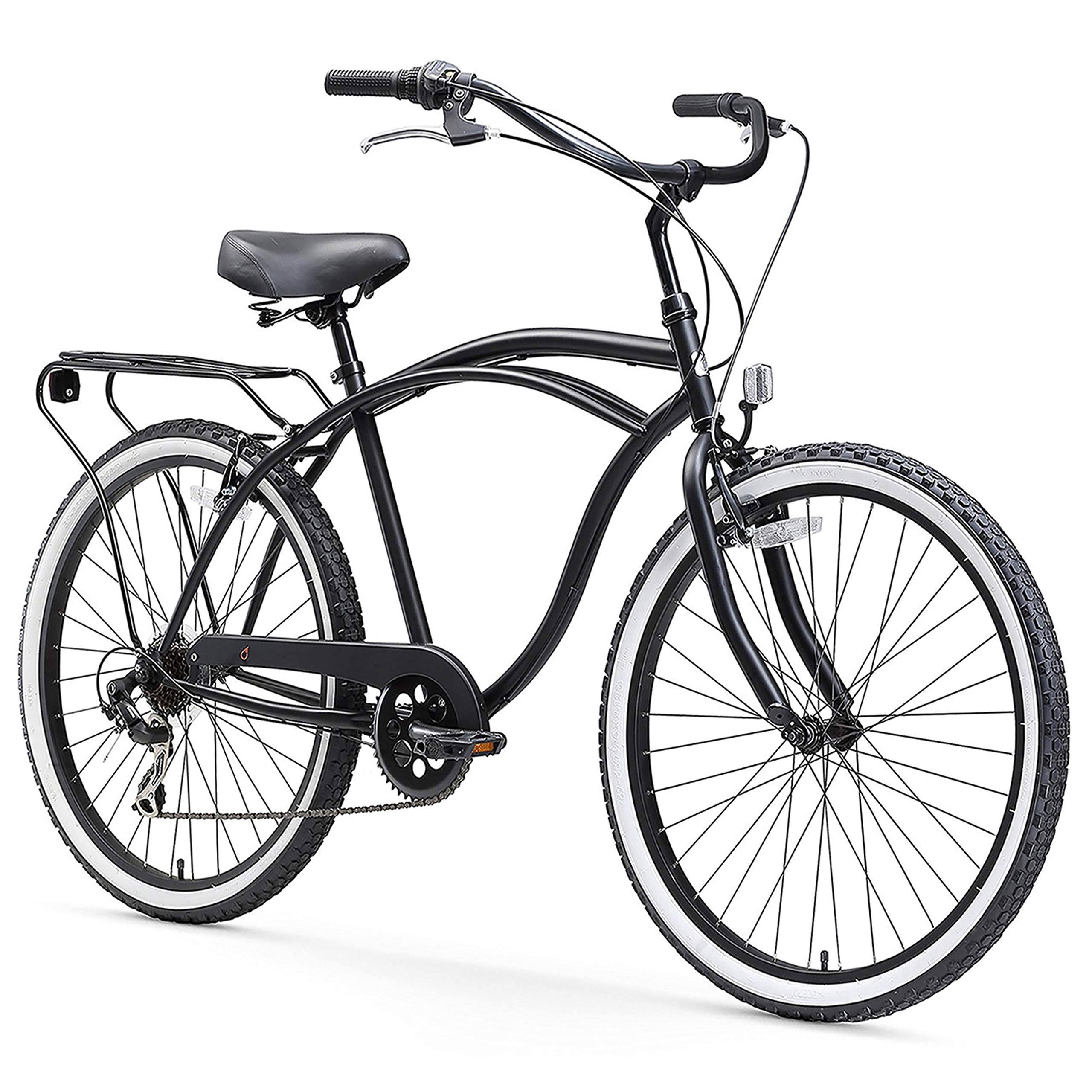 Sixthreezero Around The Block Men's 7-Speed Beach Cruiser Bicycle, 24 inch Wheels, Matte Black - Megean