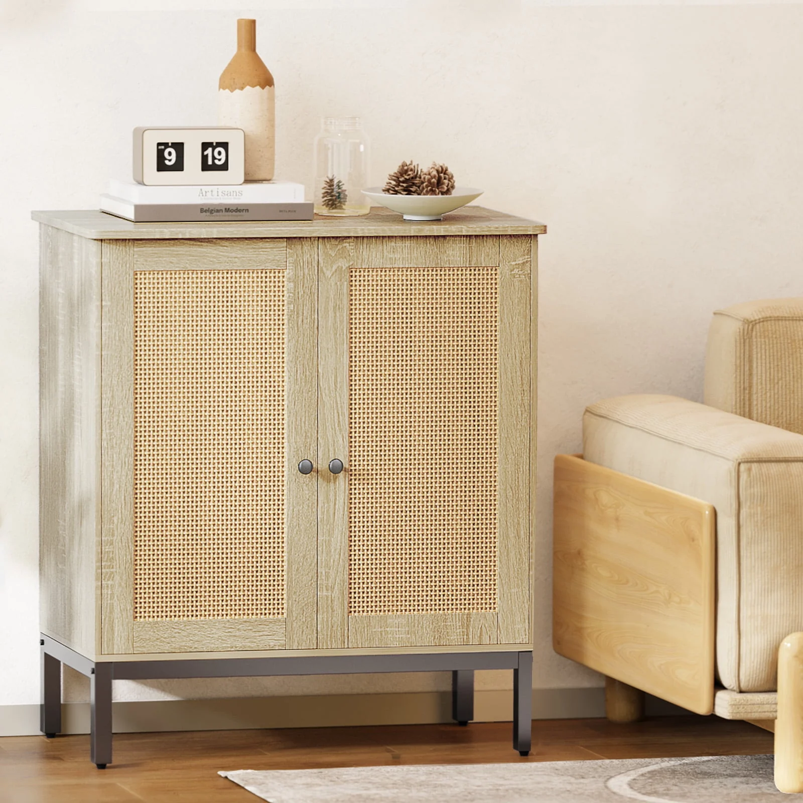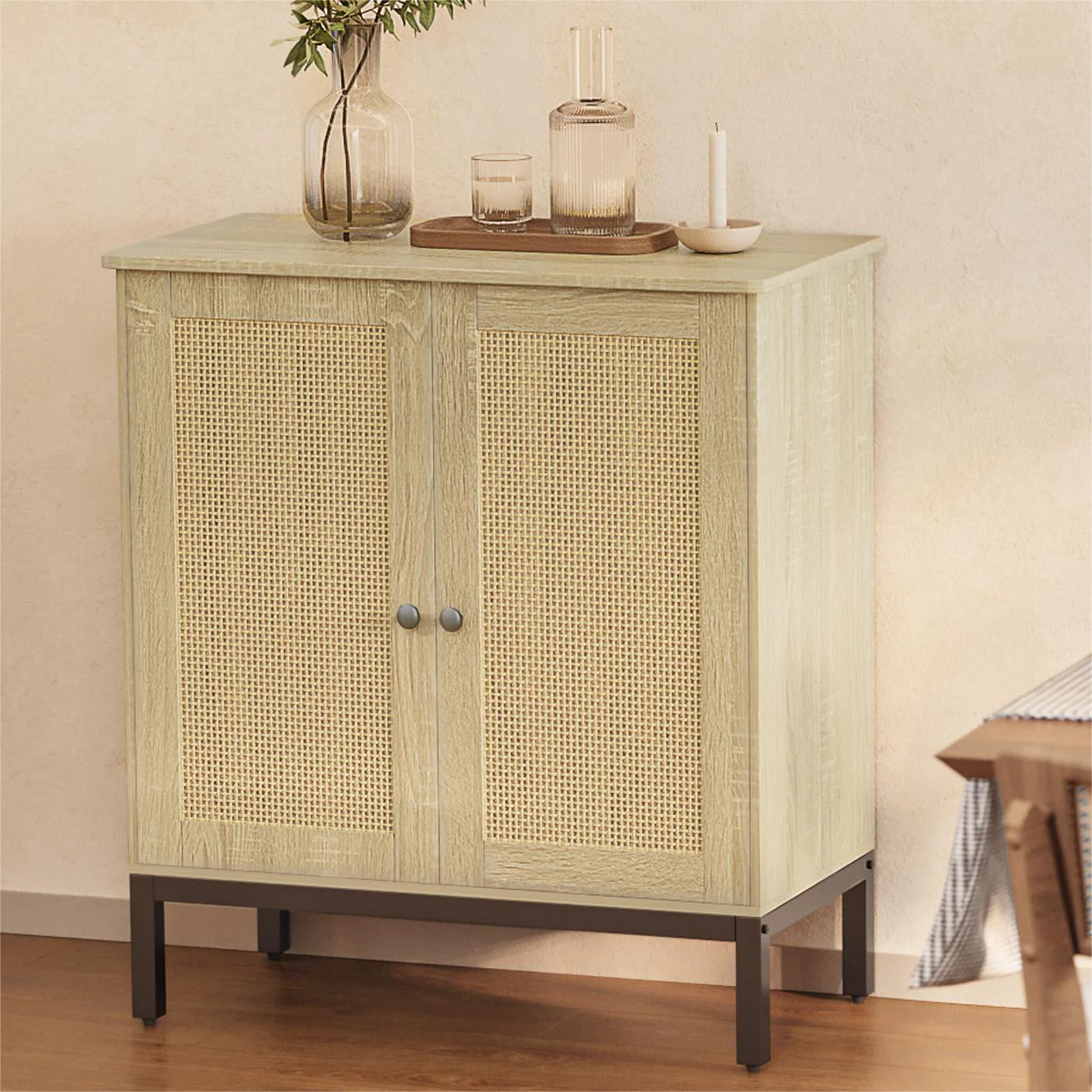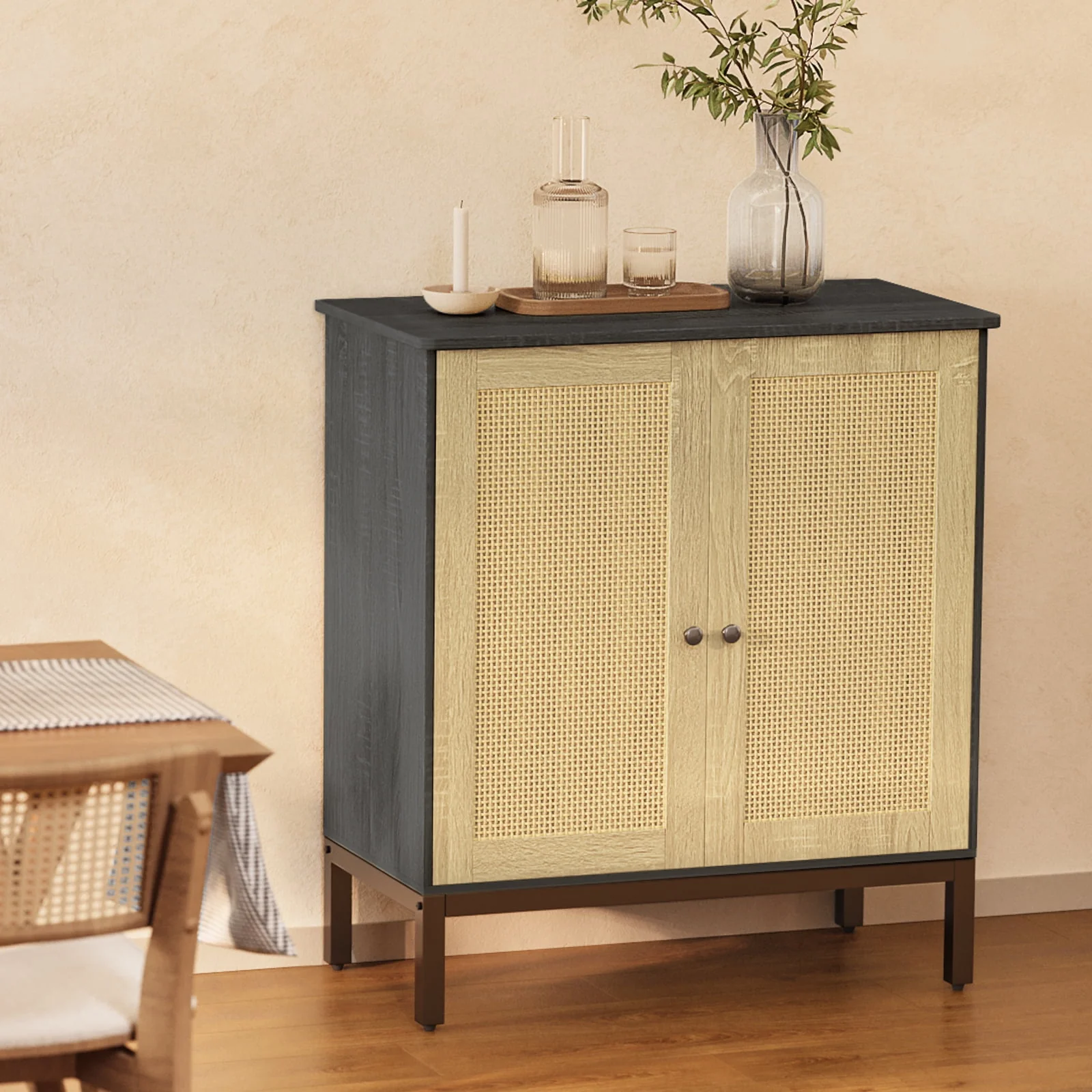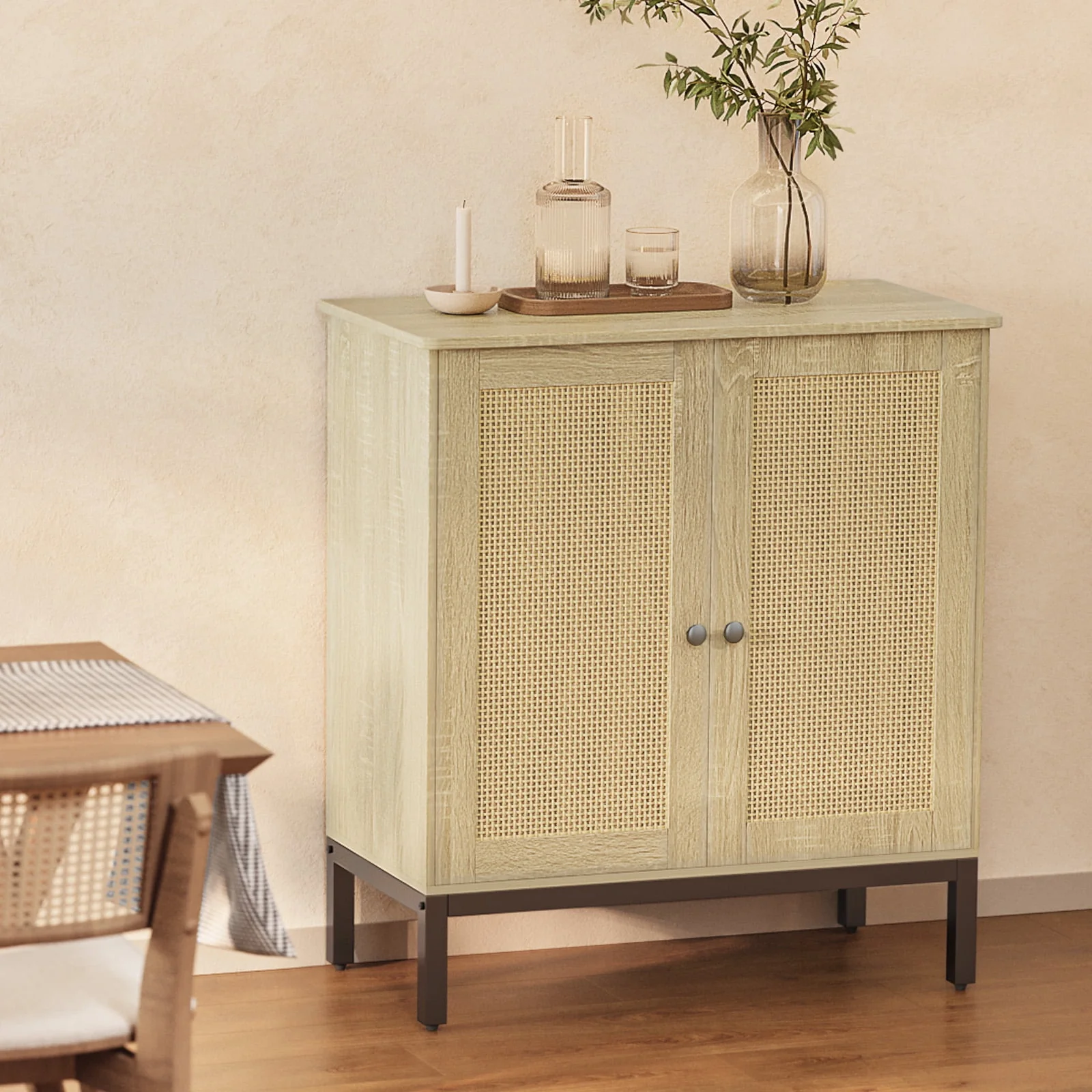 Buffet Storage Cabinet with Rattan Doors,Rattan Sideboard, Kitchen Storage Cabinet,Natural