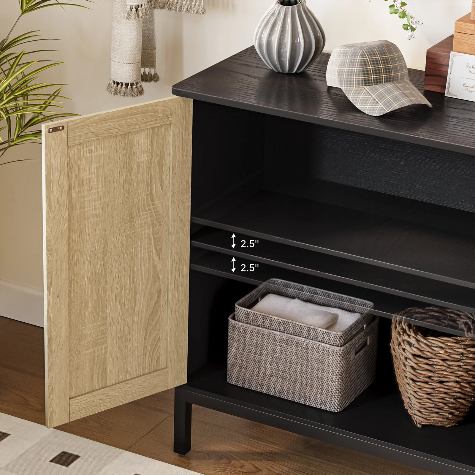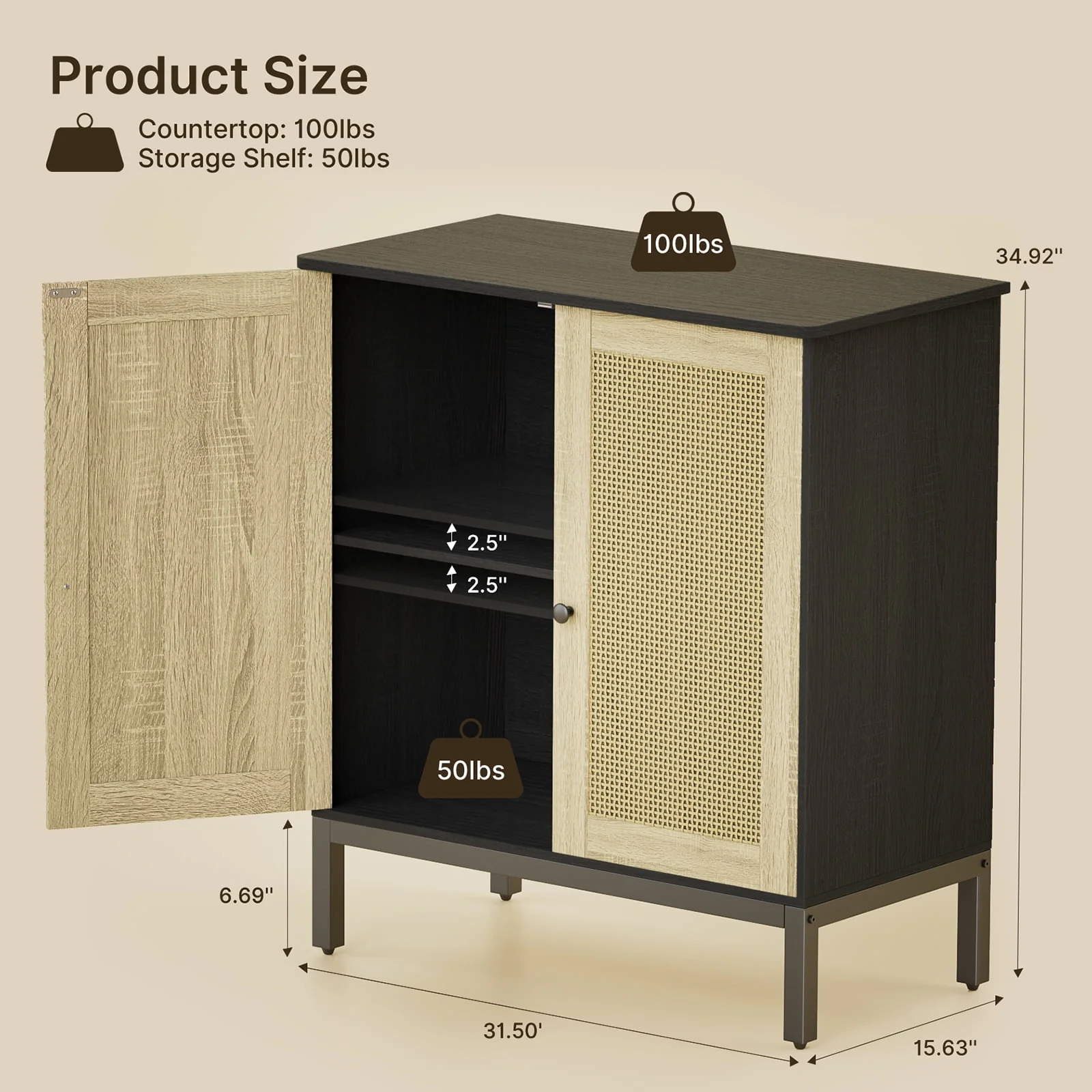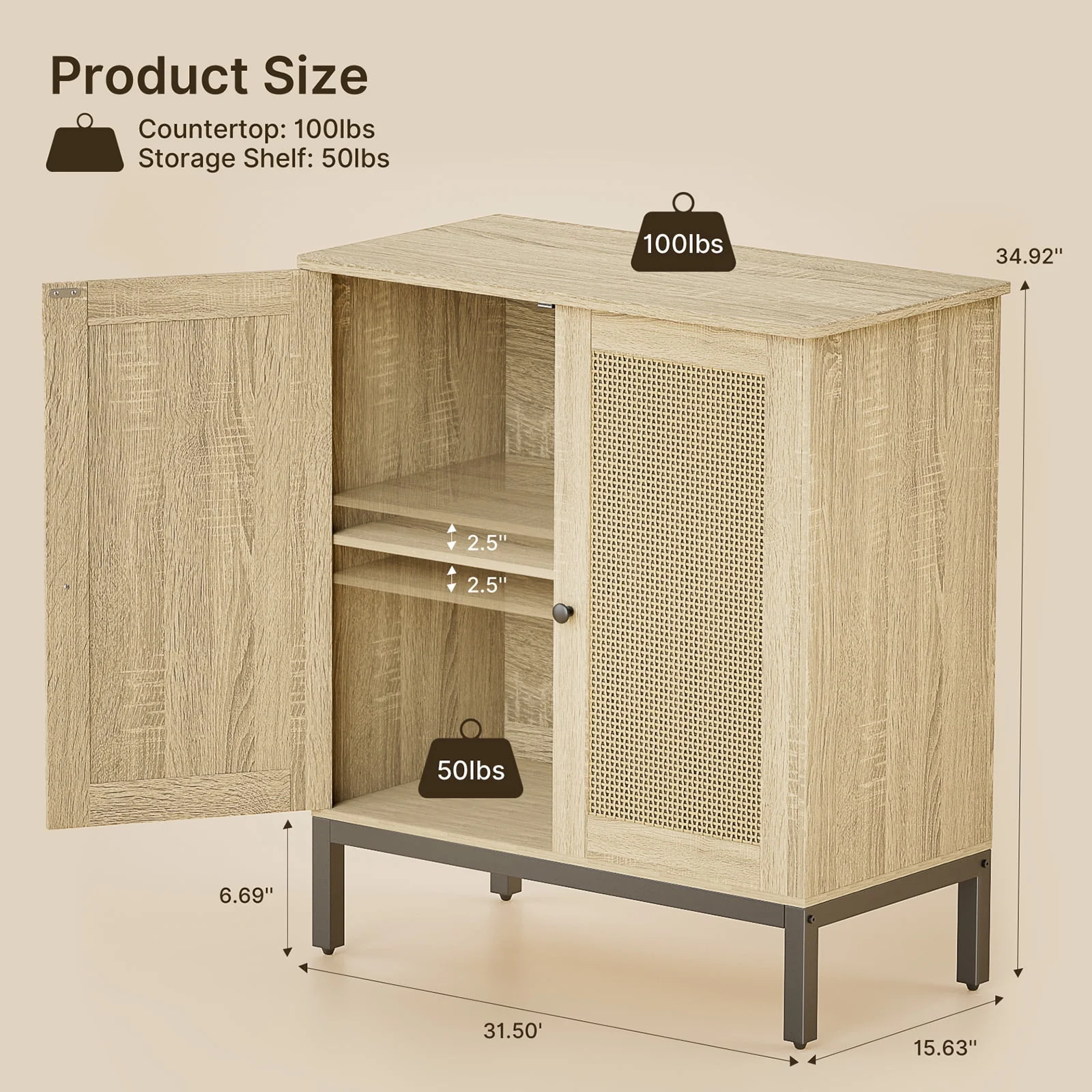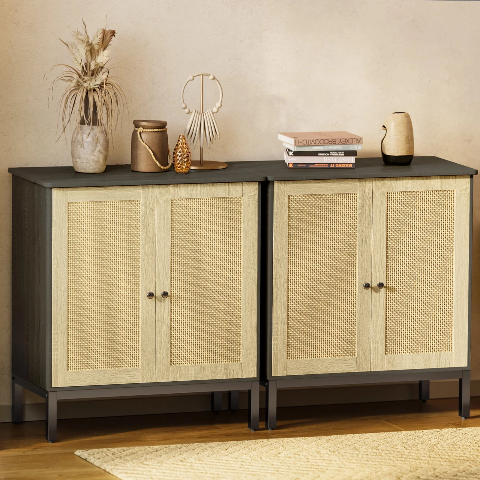 Buffet Storage Cabinet with Rattan Doors,Rattan Sideboard, Kitchen Storage Cabinet,Natural