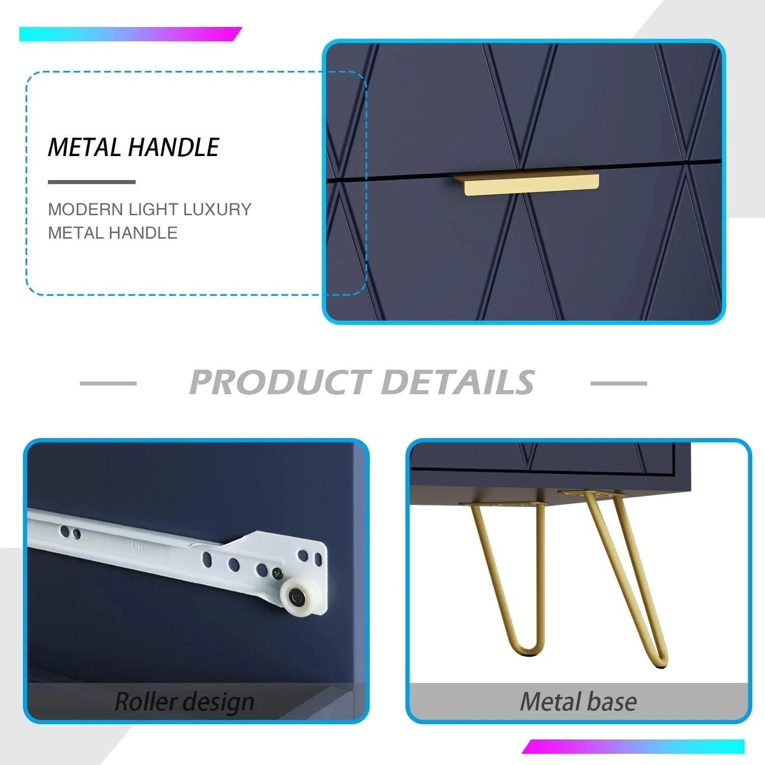 6 Drawer Dresser Drawer Chest Tall Storage Cabinet Organizer Unit Bedroom Living Room Medium-Navy Blue