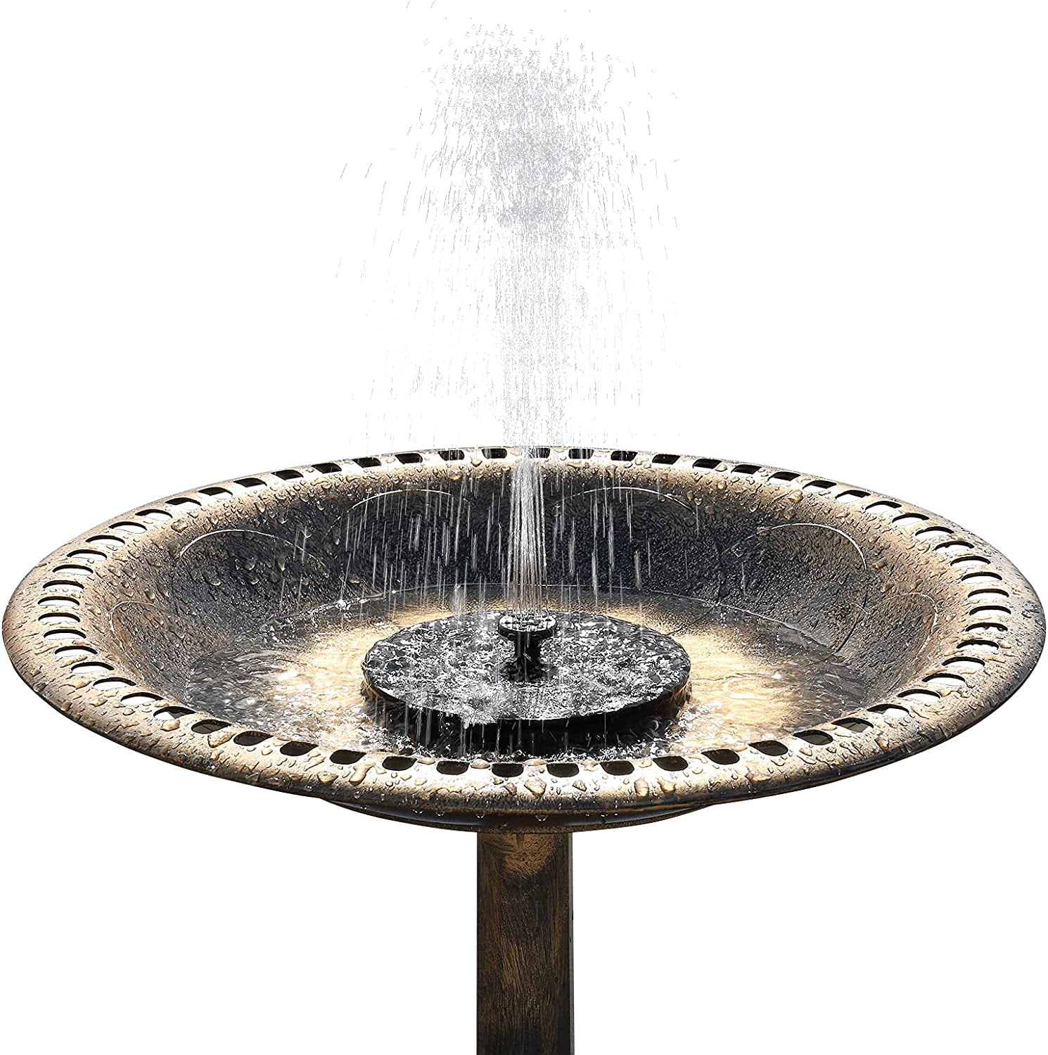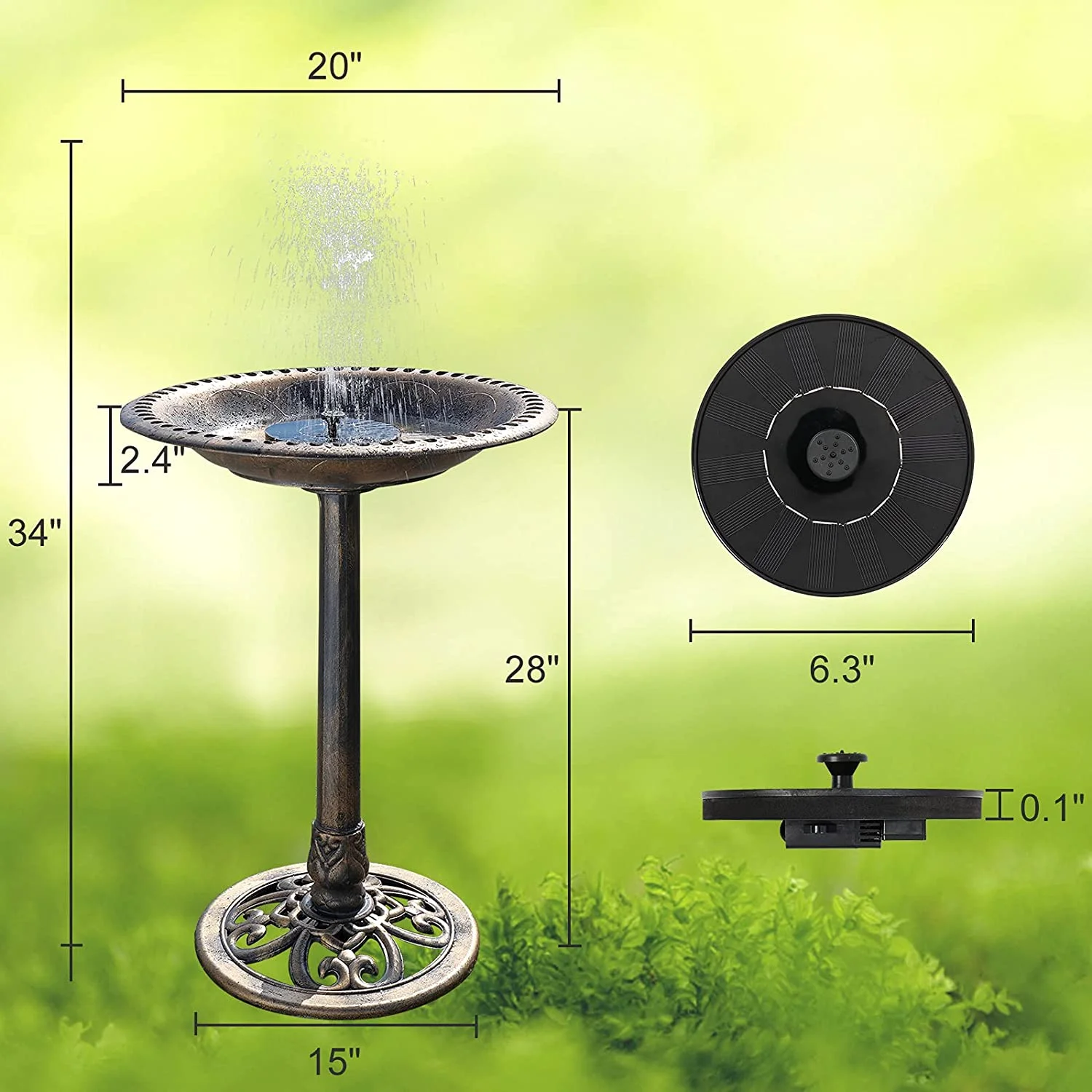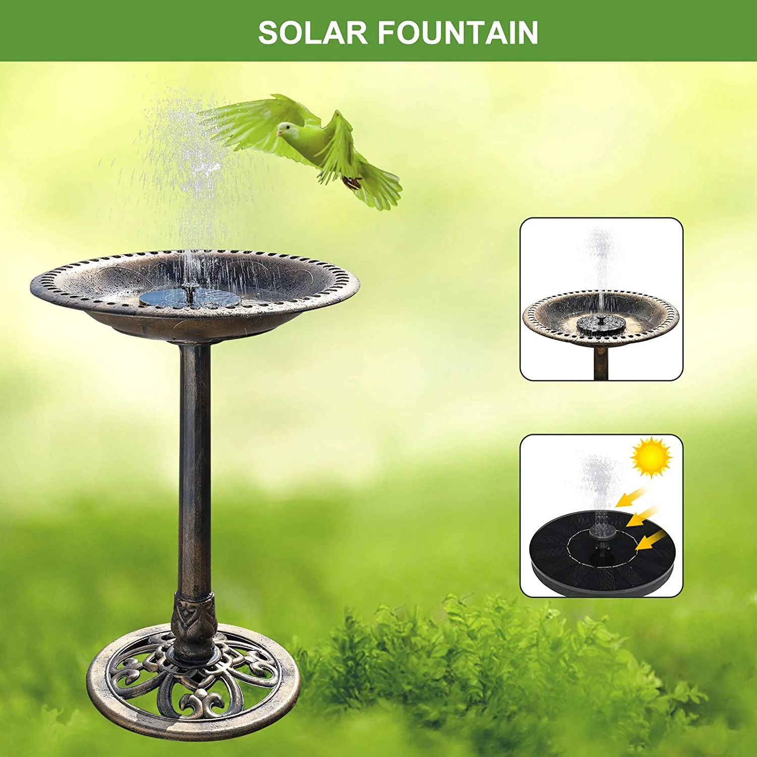 28 Inch Bird Bath with Solar Fountain Antique Copper Weather Resistant Resin Pedestal Birdbaths Floral Accents and Vintage Finish Garden Decor for Outdoor Lightweight Courtyard - Curated Treasures Market