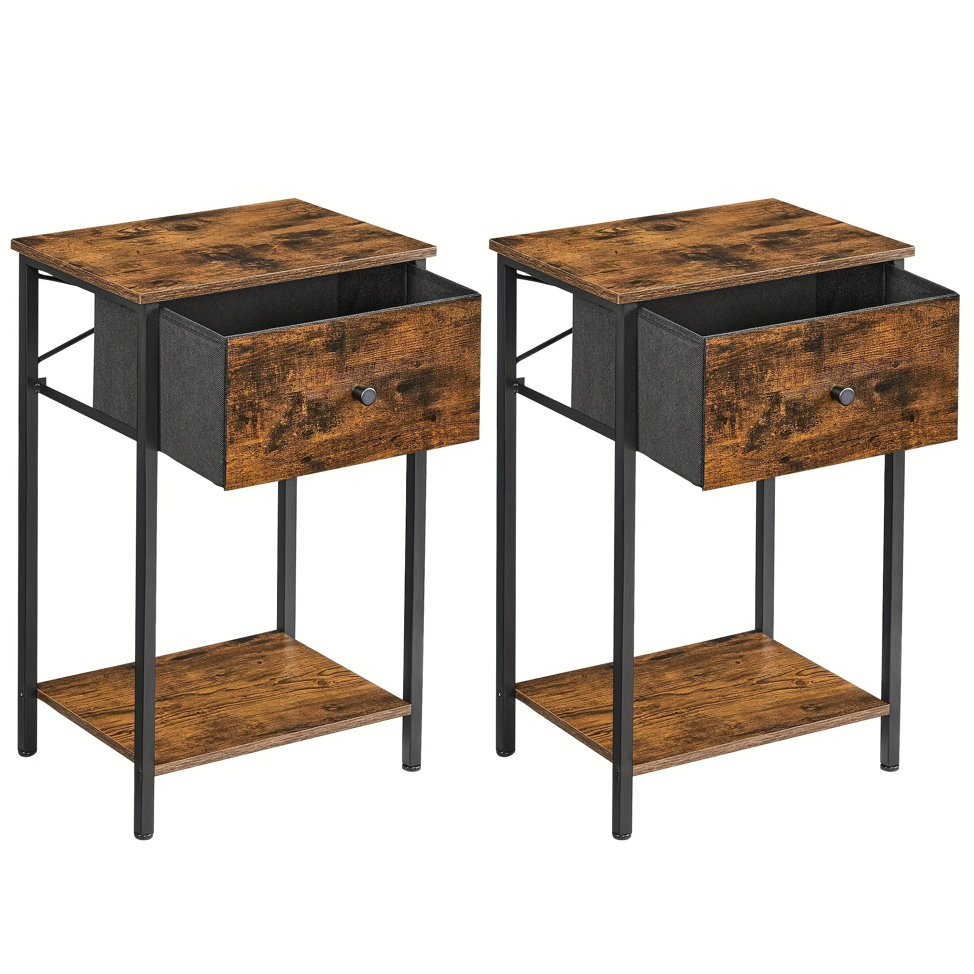 Nightstands, Set of 2 Side Tables with Fabric Drawer, 24-Inch Tall End Tables with Storage Shelf, Bedroom - Curated Treasures Market