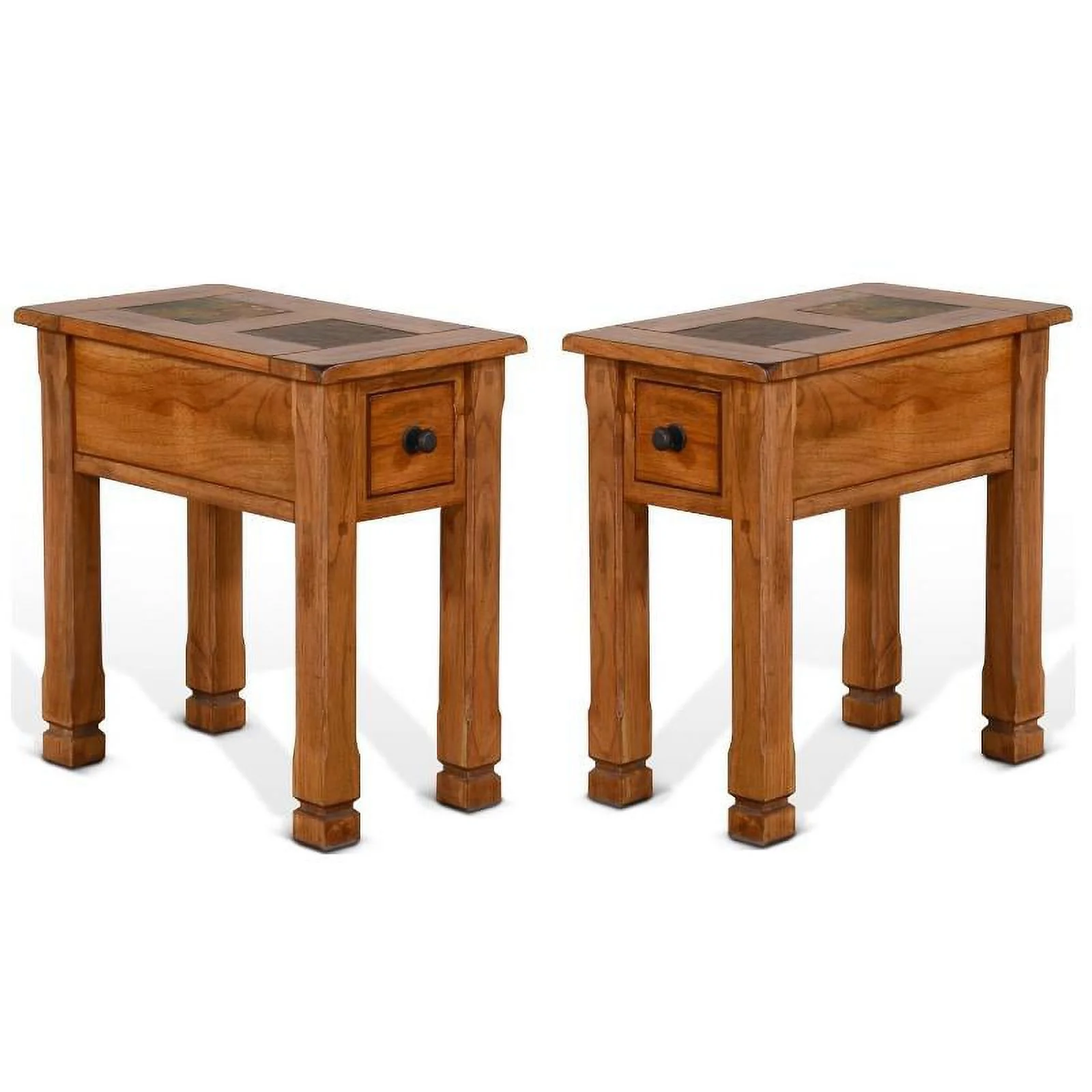 Home Square 15" Transitional Wood Chair Side Table in Rustic Oak - Set of 2 - Curated Treasures Market