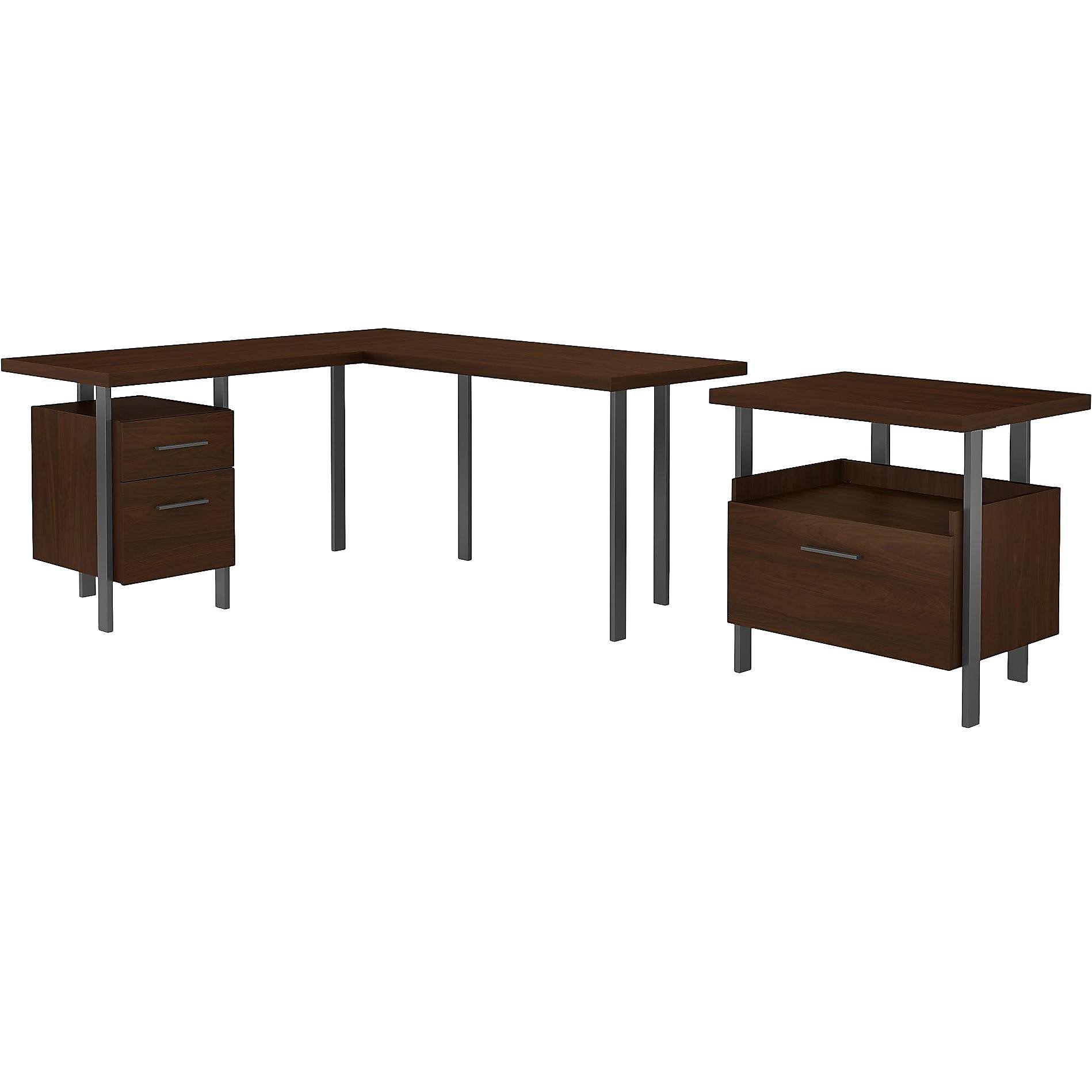 Bush Furniture Architect 60"W L-Shaped Desk with Lateral File Cabinet, Modern Walnut (ACT004MW) - Megean