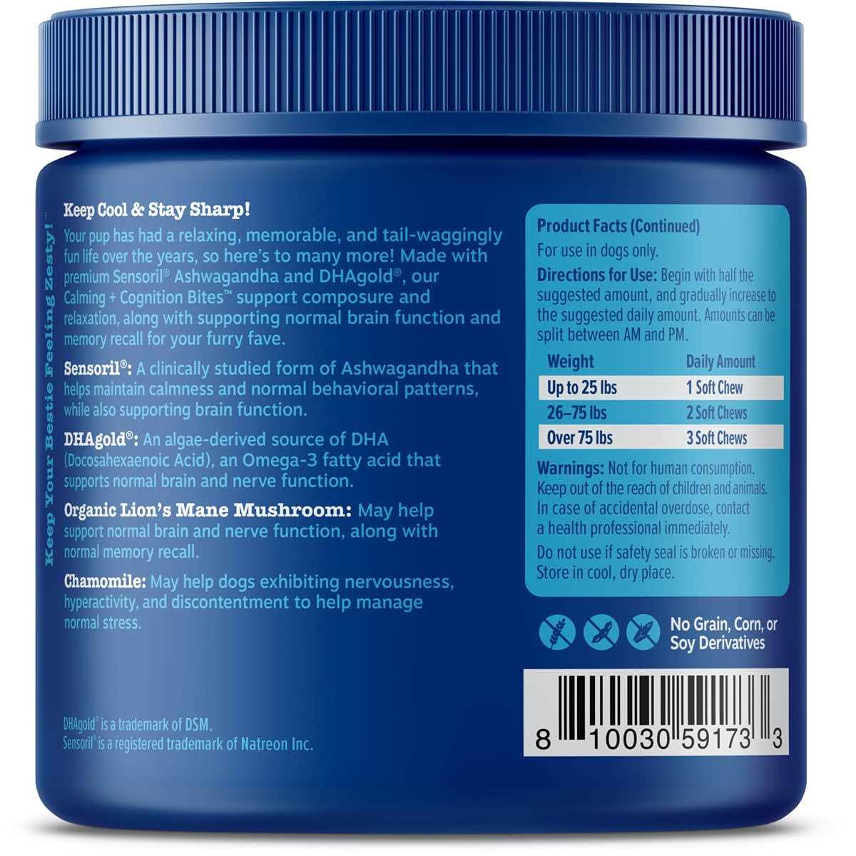 Zesty Paws Senior Advanced Calming + Cognition Bites Chicken Flavor Soft Chews Composure Supplement for Dogs