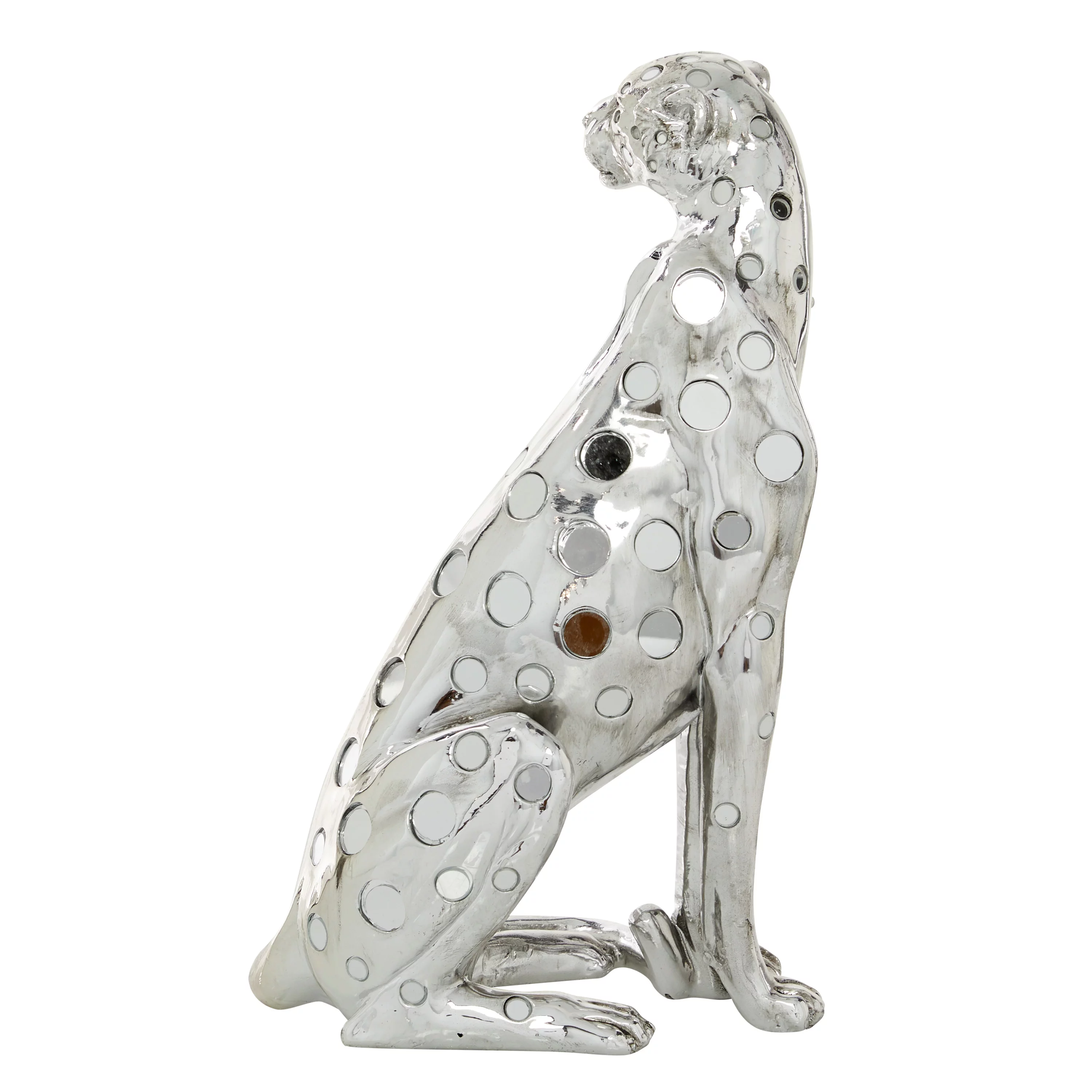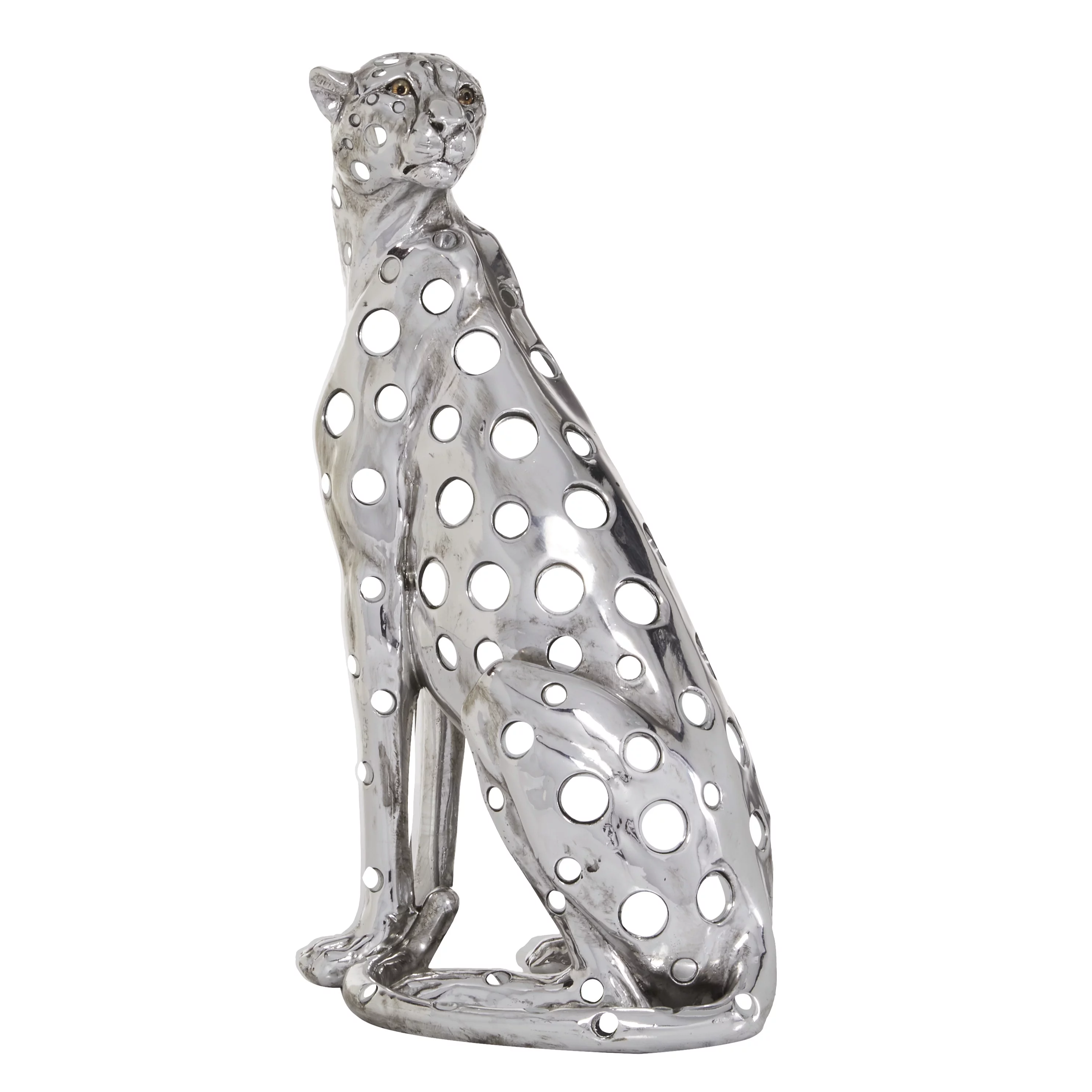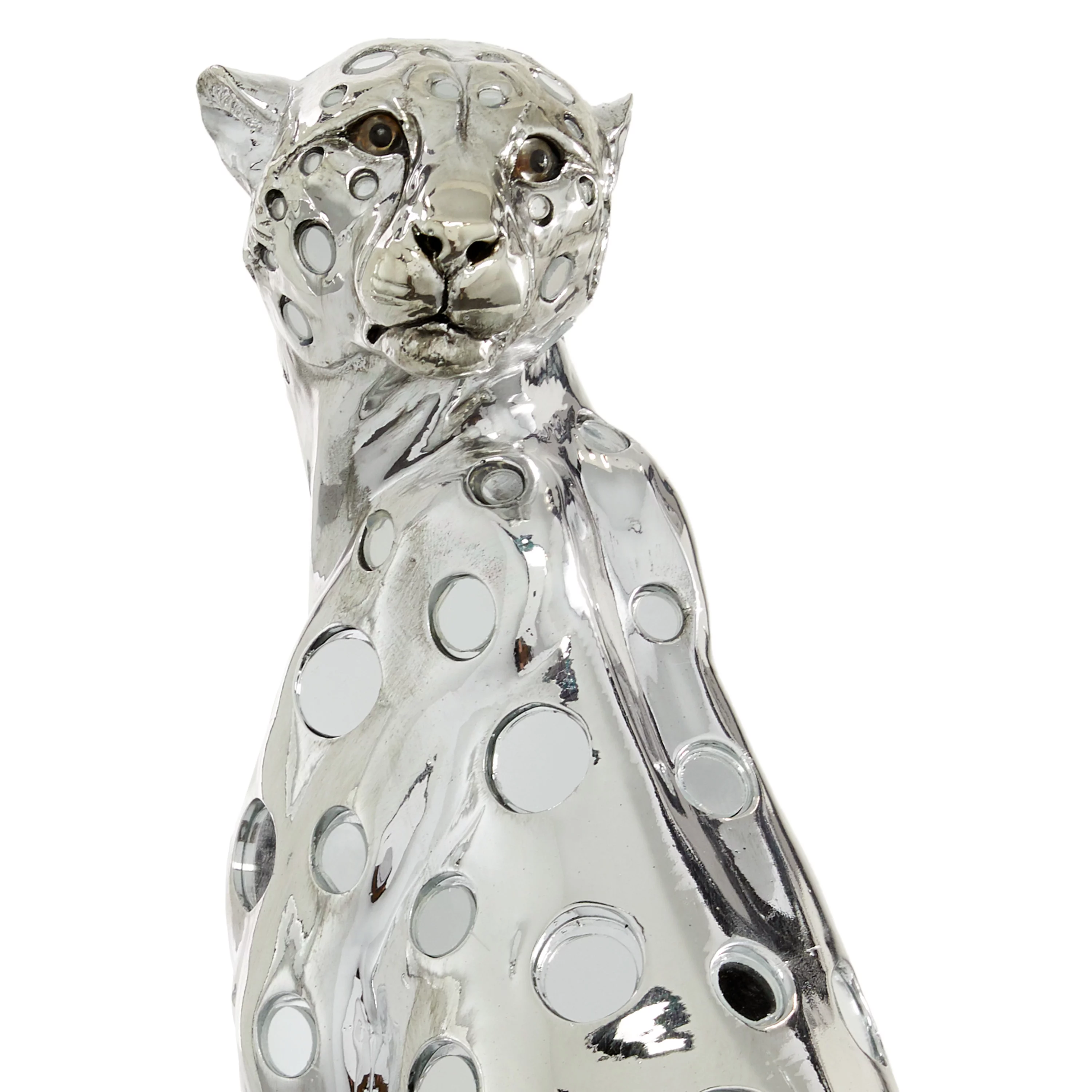 7" x 16" Silver Polystone Leopard Sculpture, by DecMode - Curated Treasures Market
