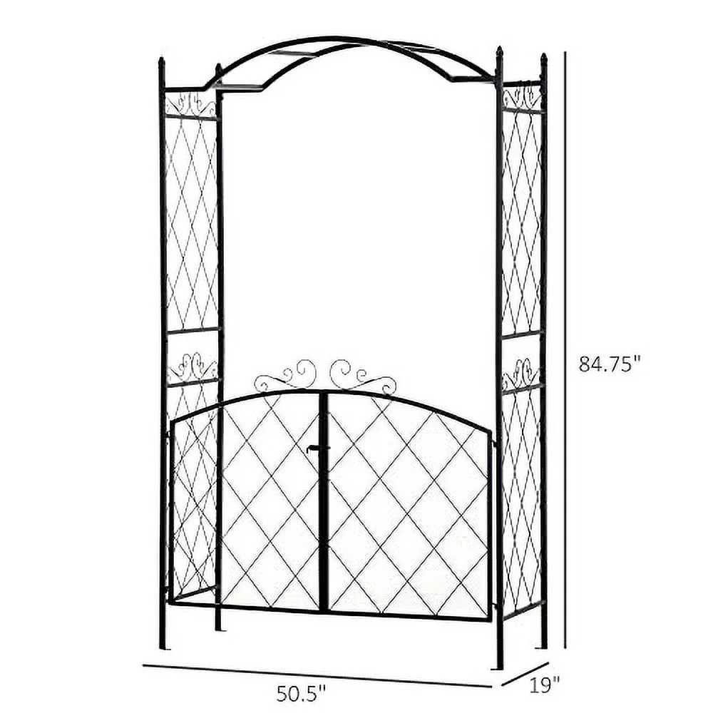 Outsunny 85" Garden Arch Arbor, Metal Arch Trellis with Gate, Garden Archway for Climbing Vines, Wedding Ceremony Decoration, Black - Curated Treasures Market