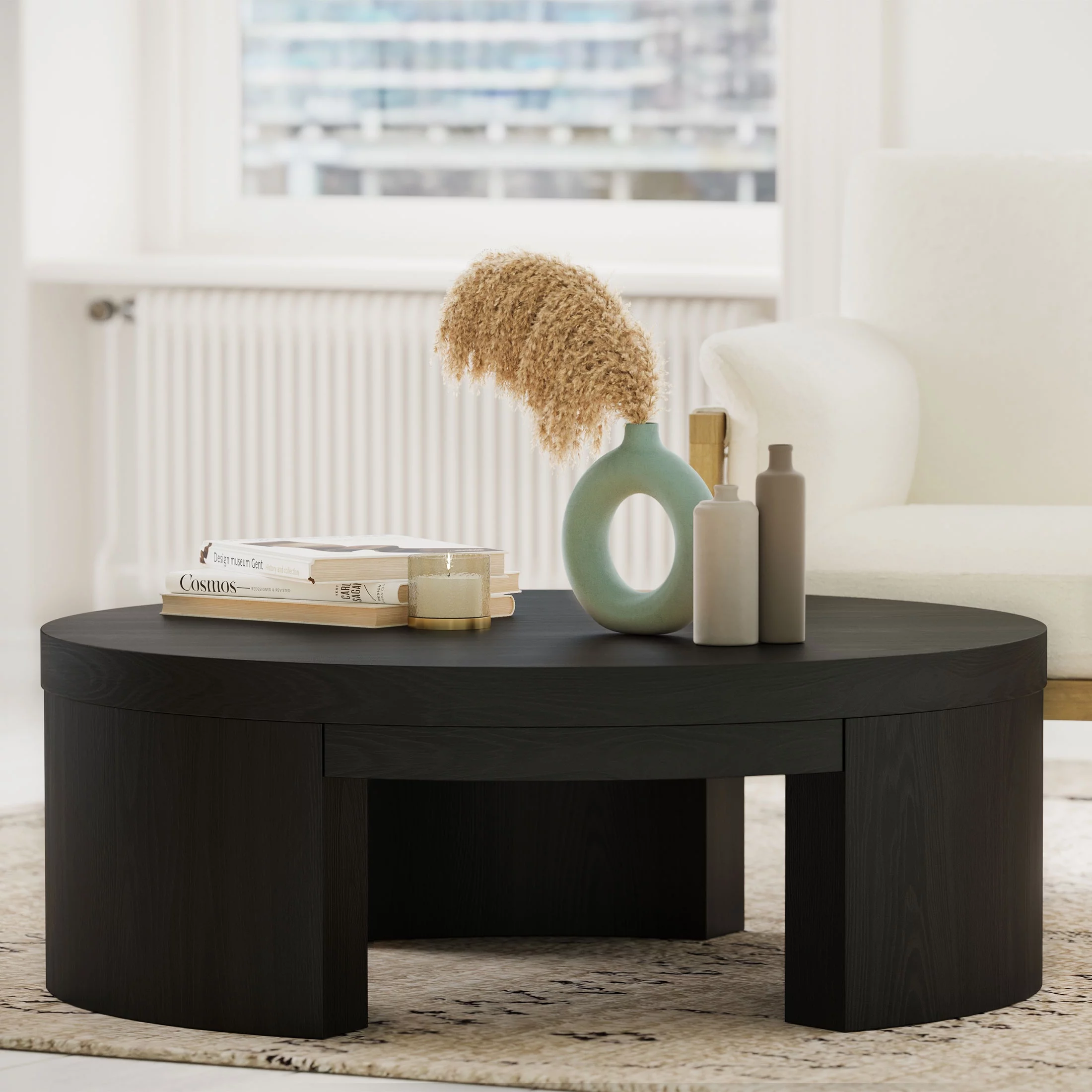 Beautiful Mod Round Coffee Table by Drew Barrymore, Black Finish