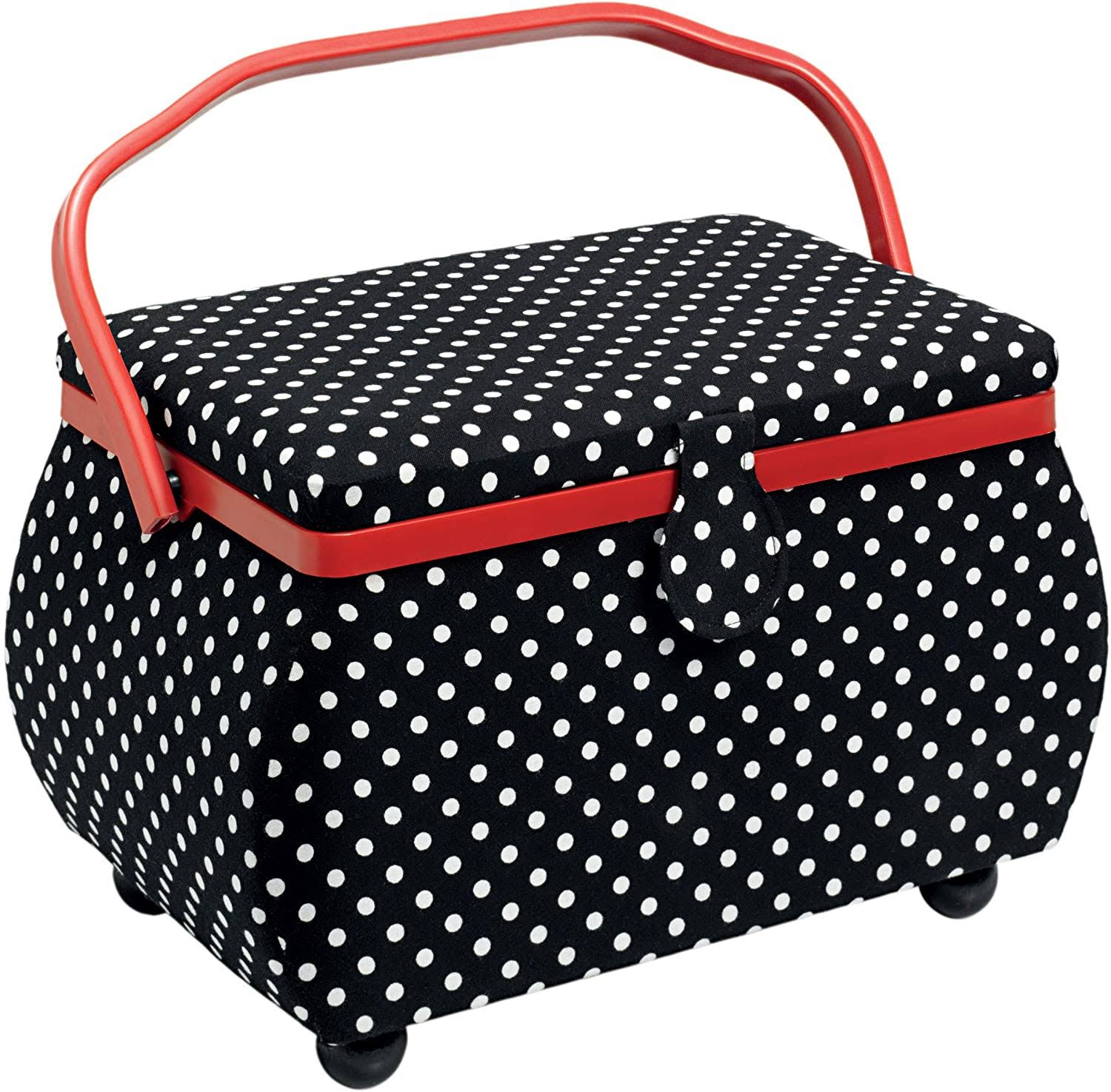 Prym 612246 | Black & White Polka Dot Print Sewing Basket | 32 x 20 x 20cm - Megean