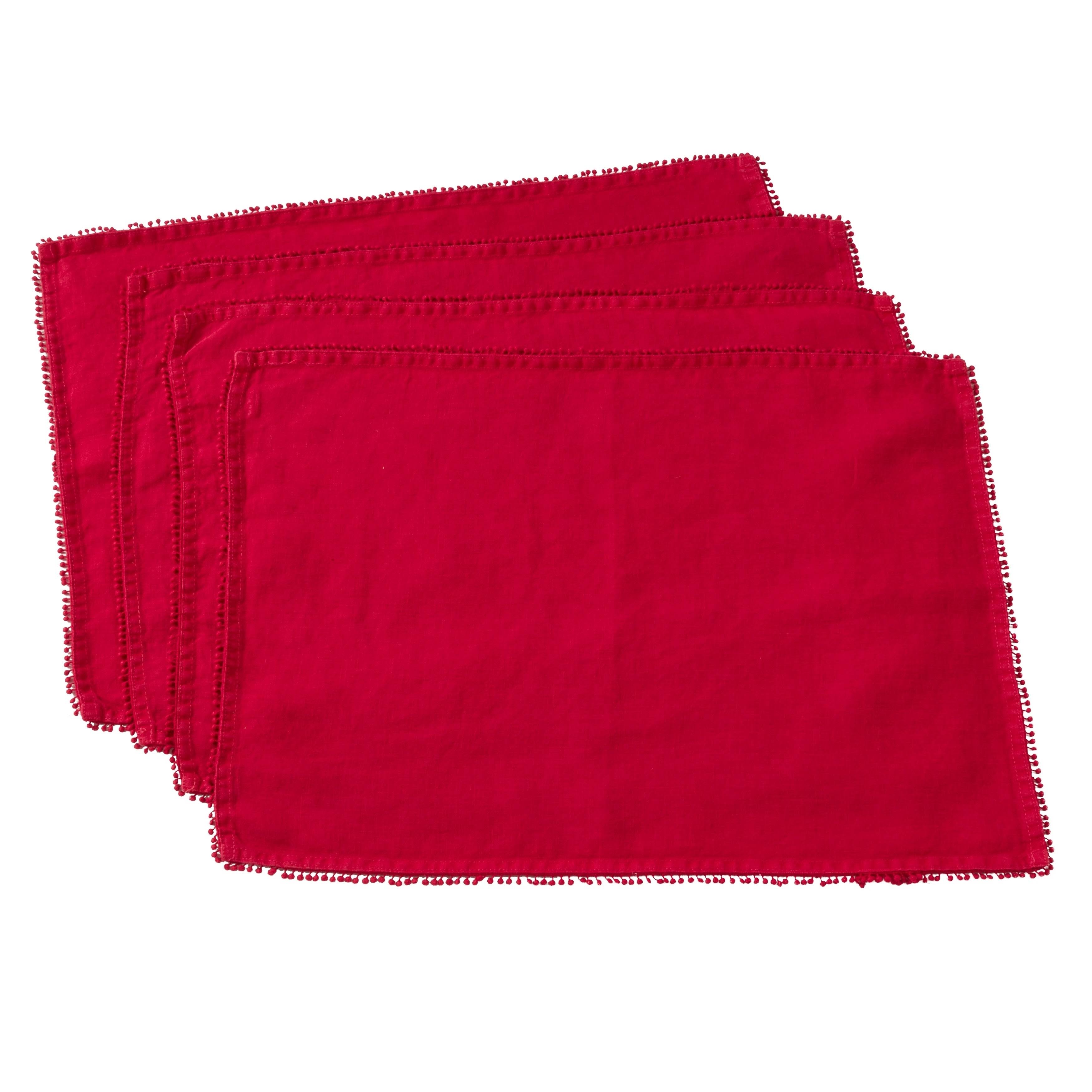 Saro Lifestyle 15062.R1420B 14 x 20 in. Rectangle Pompom Design Placemat - Red Set of 4 - Avayadevconnect