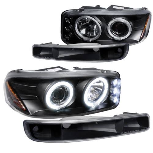 Spec-D Tuning 1999-2006 GMC Sierra Yukon Pro Headlights + Bumper Lights 2000 (Left + Right) 99 00 01 02 03 04 05 06, Black - Avayadevconnect