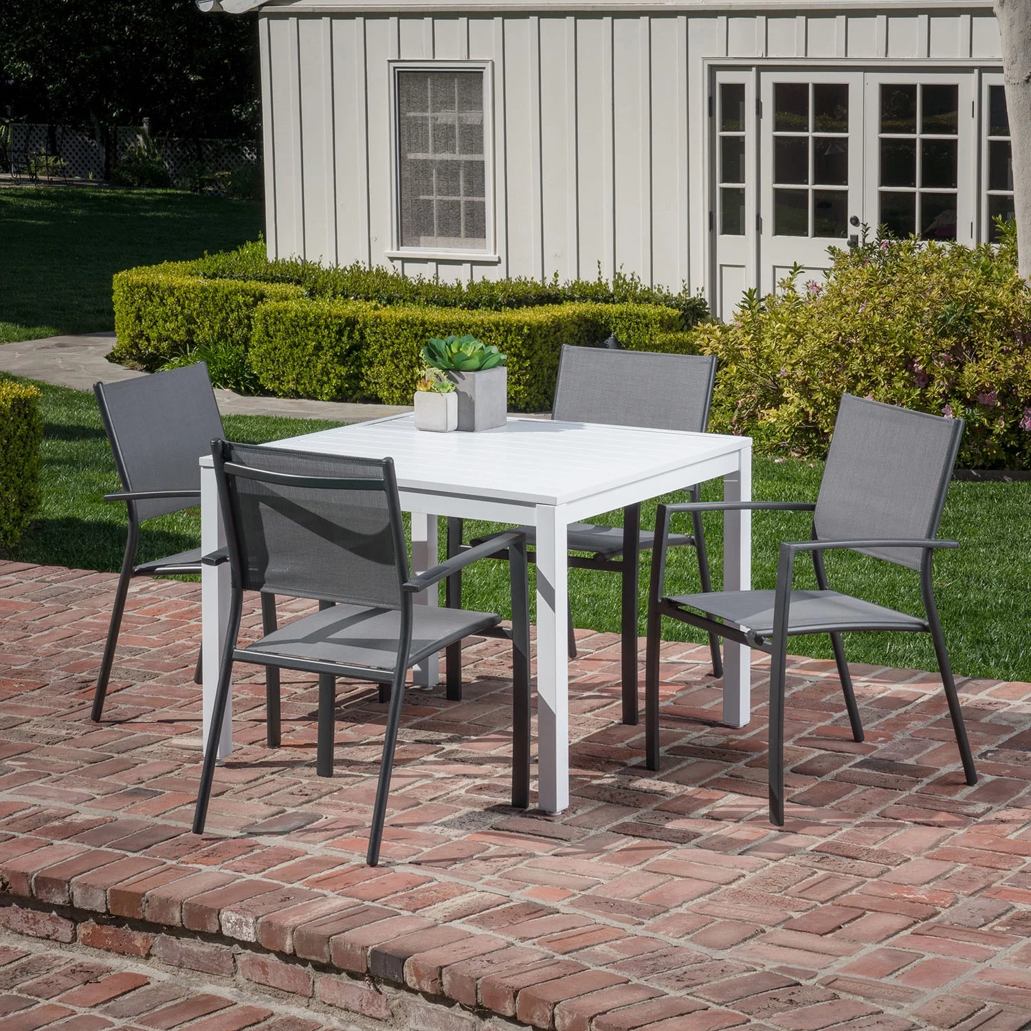Hanover Del Mar 5-Piece Outdoor Dining Set with 4 Sling Arm Chairs and a 38" Square Dining Table - Curated Treasures Market