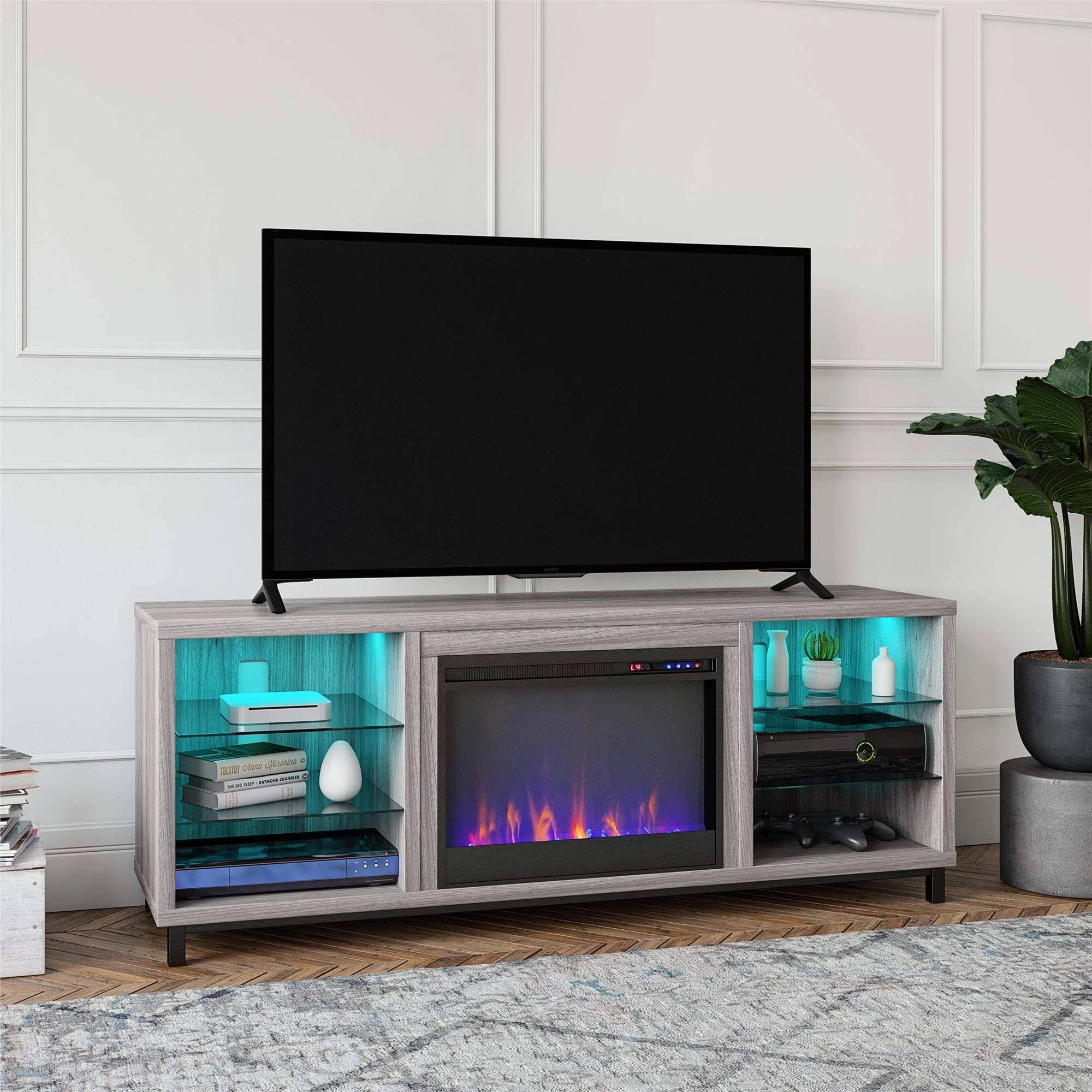 Ameriwood Home Lumina Deluxe Fireplace TV Stand for TVs Up to 70" Light Walnut - Megean