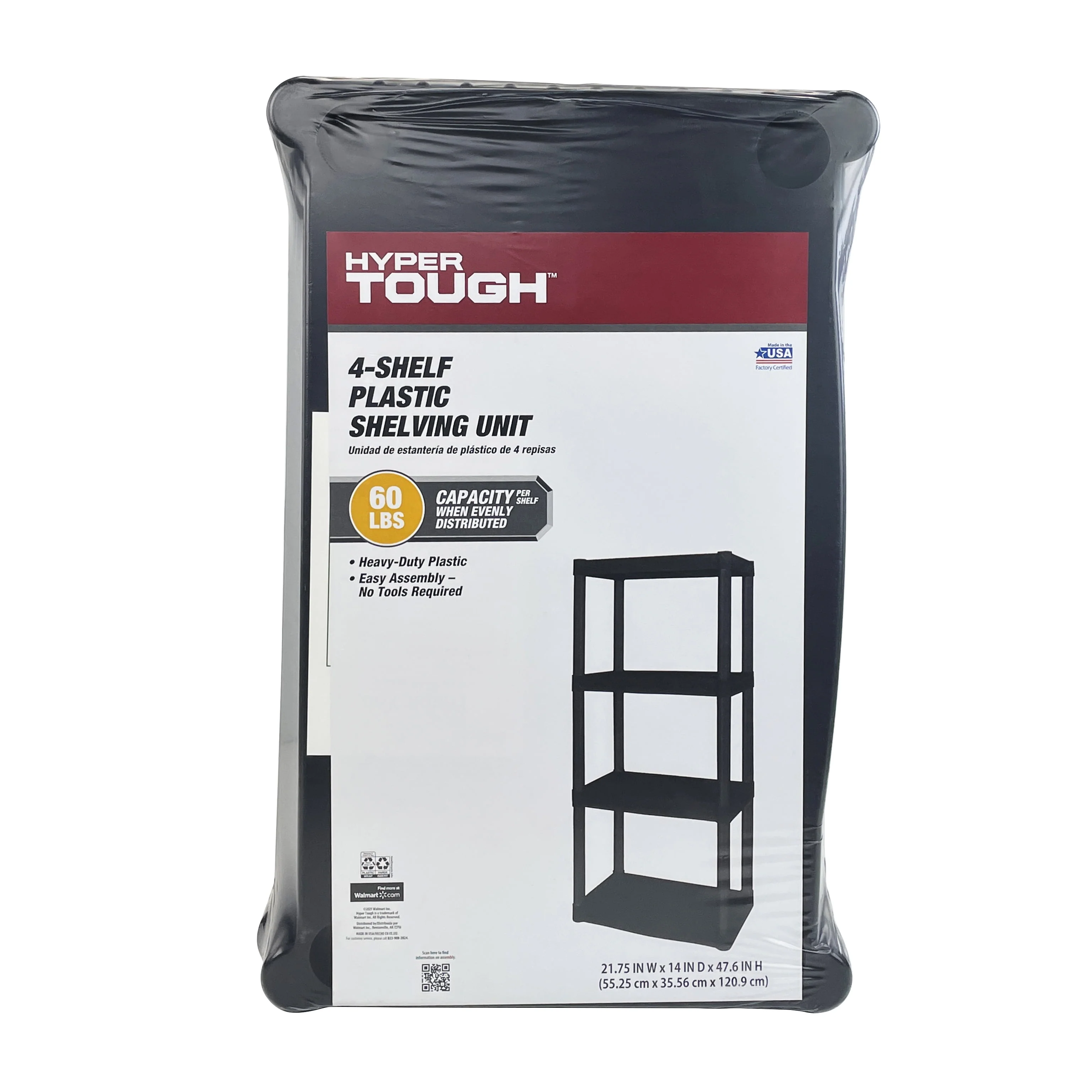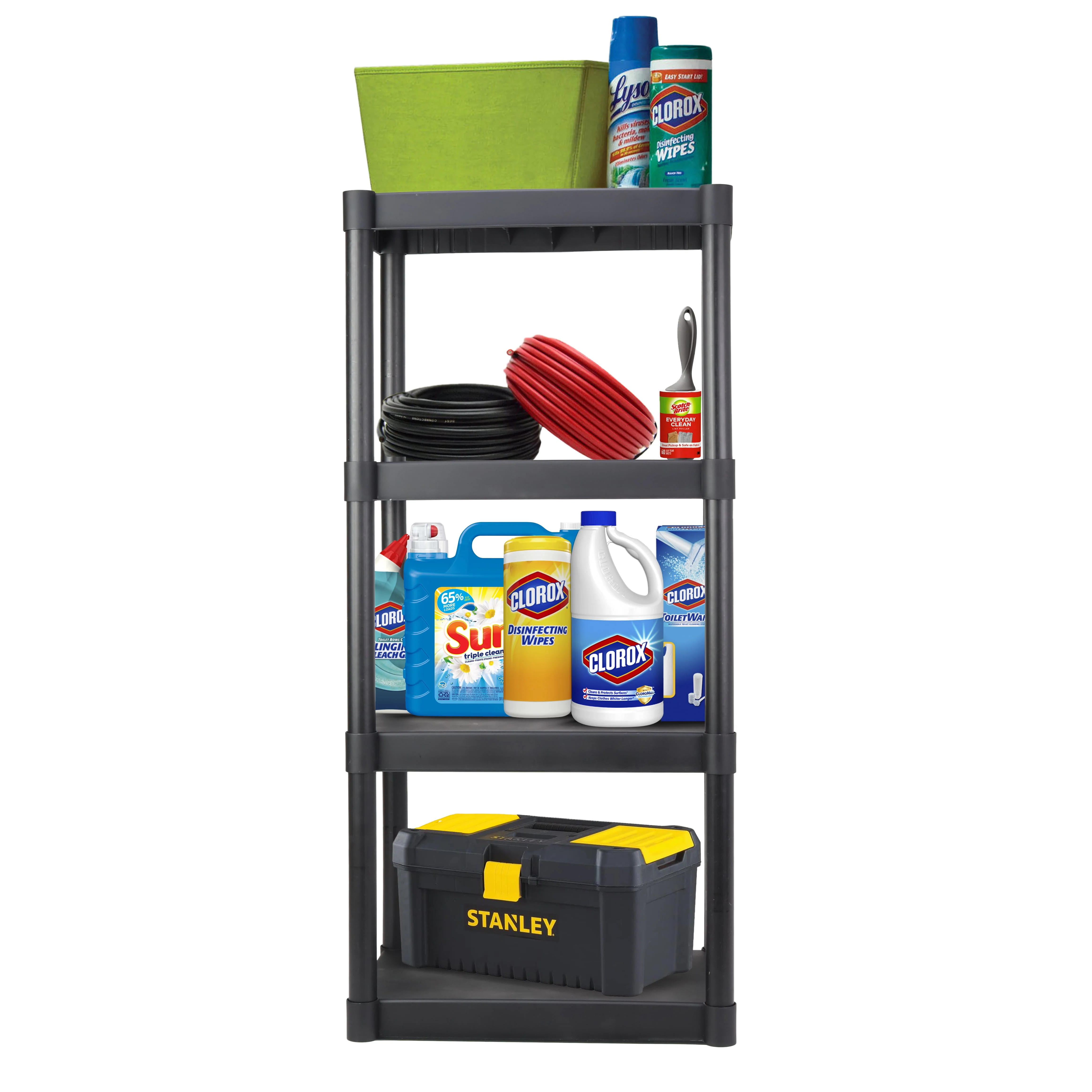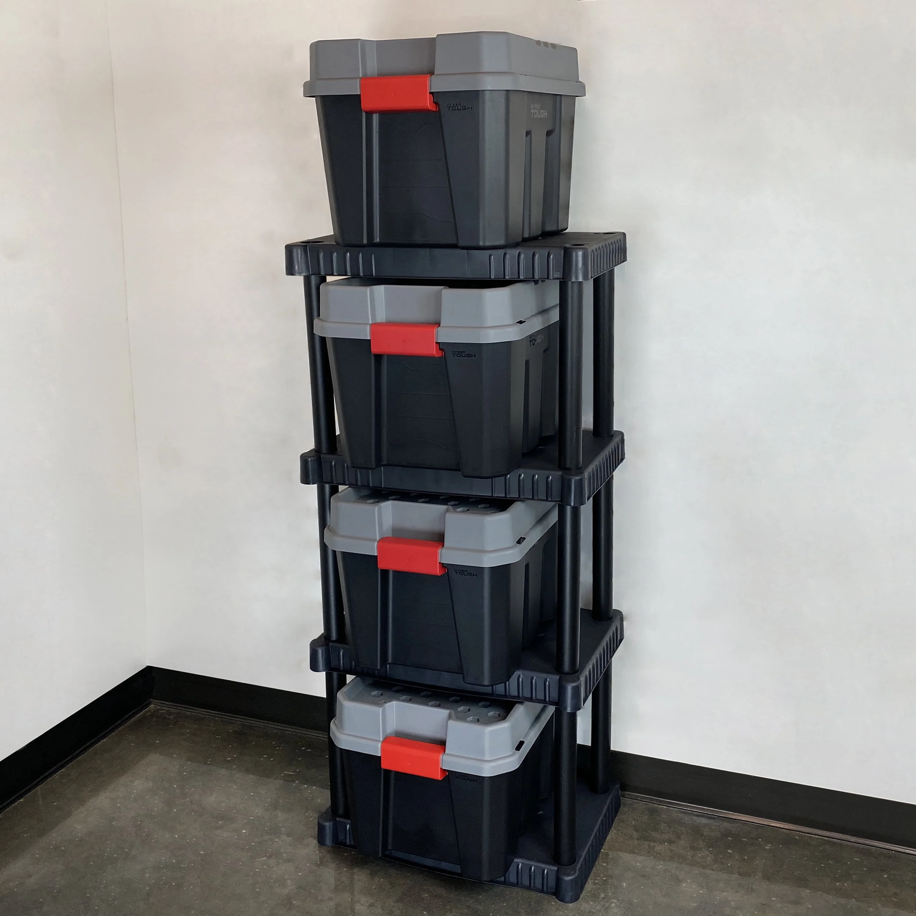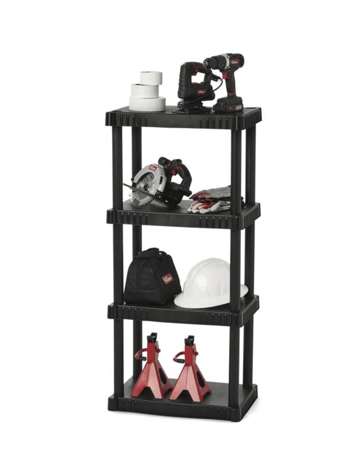Hyper Tough Plastic 4-Tier Storage Shelves 47.6H x 21.75W x 14D, 240lb Total Capacity, Black