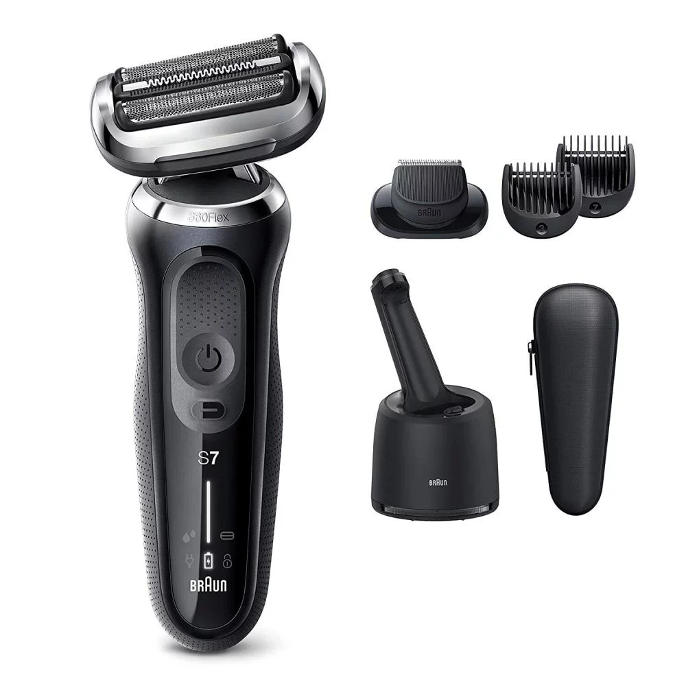 Braun Electric Razor for Men, Series 7 7075cc 360 Flex Head Electric Foil Shaver with Beard Trimmer, Rechargeable, Wet & Dry, 4in1 SmartCare Center and Travel Case