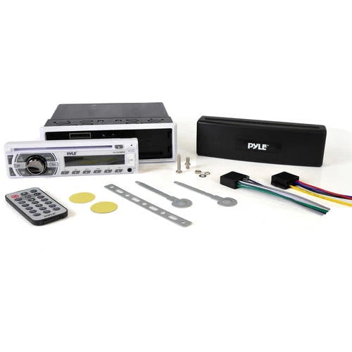 Pyle Single DIN Marine Bluetooth Stereo Receiver & CD Player with Remote, White
