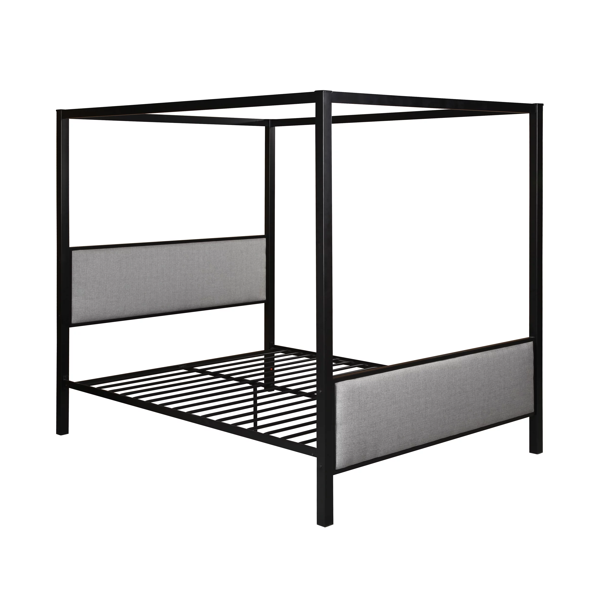 Noble House Callum 84 Gray and Black Fabric Hand Crafted Queen Bed Frame