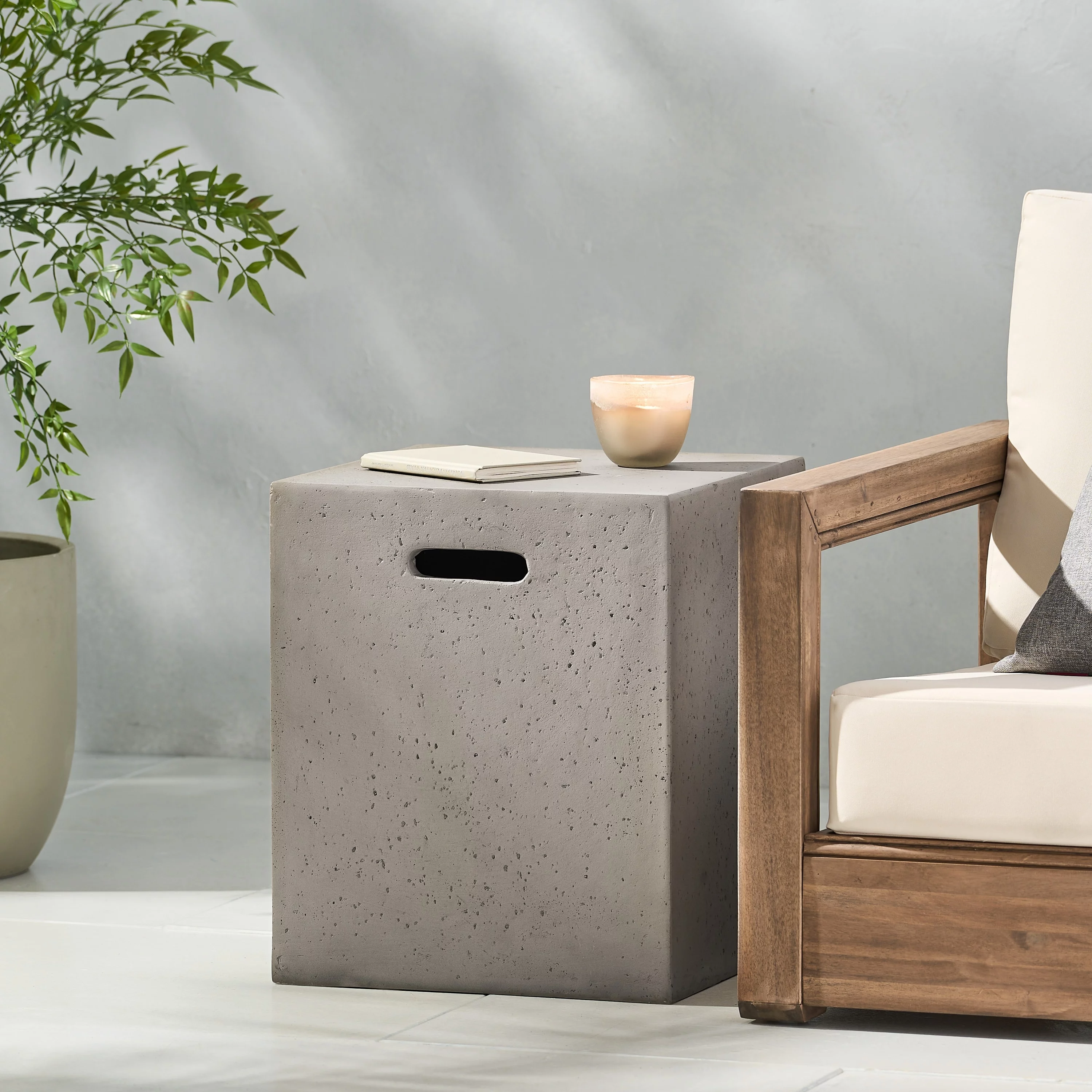 Christopher Knight Home Aidan Outdoor Lightweight Concrete Tank Holder Side Table by Grey - Curated Treasures Market