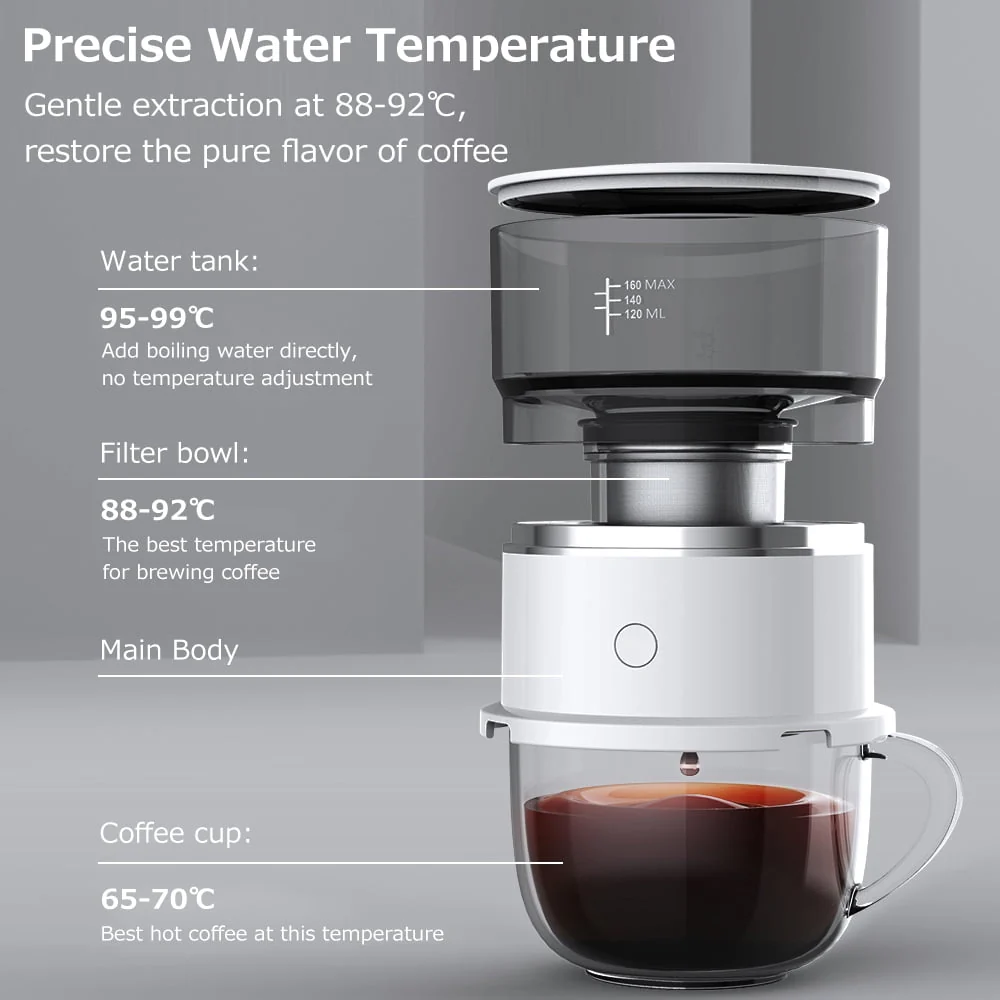 ammoon Portable Espresso Machine, Electric Coffee Pot, Stainless Steel Mesh, White