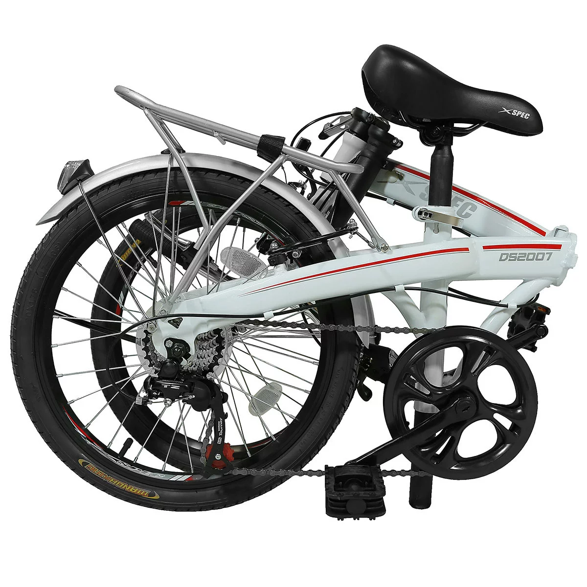 Xspec 20 7 Speed City Folding Compact Bike Bicycle Urban Commuter Shimano, White