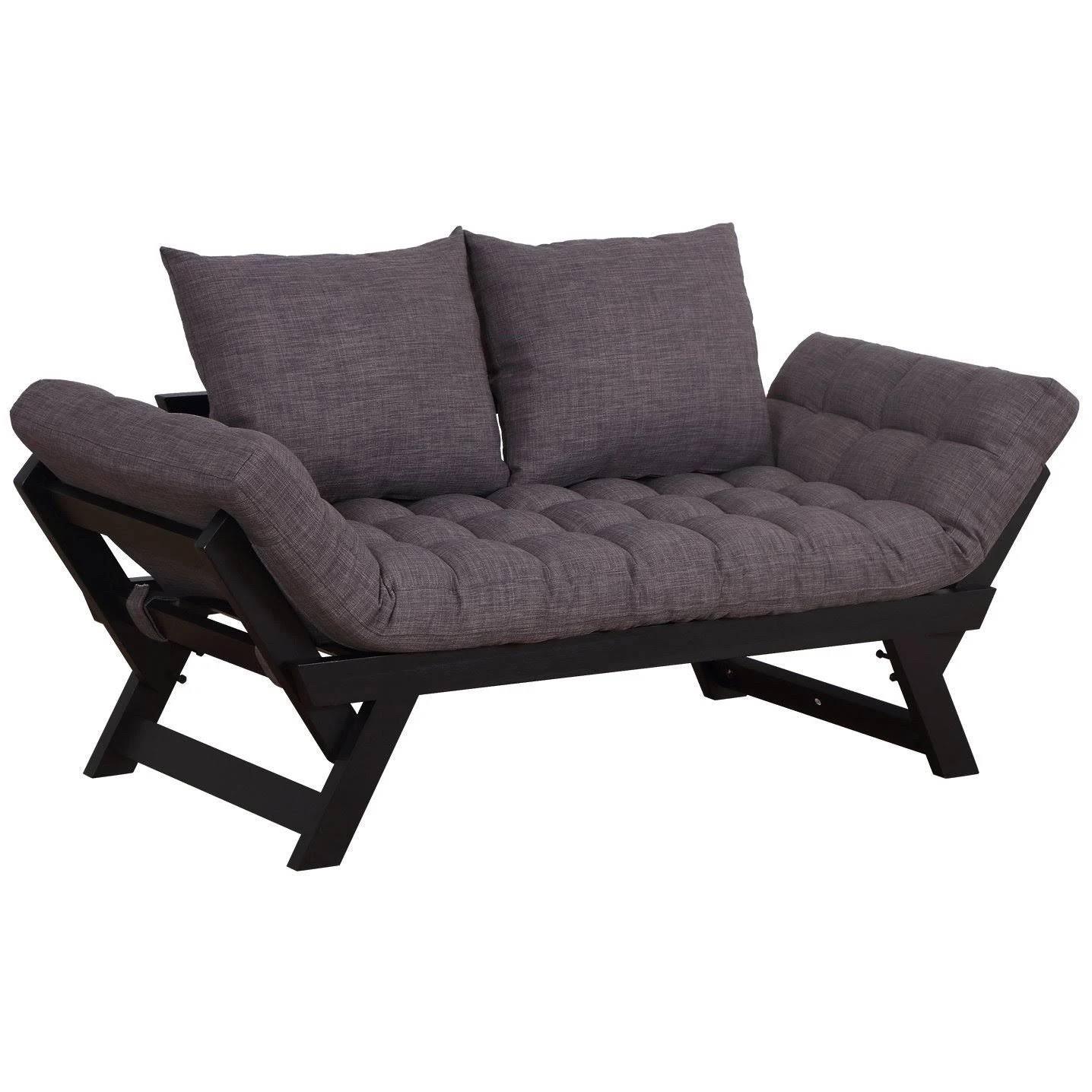 HOMCOM Single Person 3 Position Convertible Couch Chaise Lounger Sofa Bed - Black/Dark Charcoal Grey - Megean