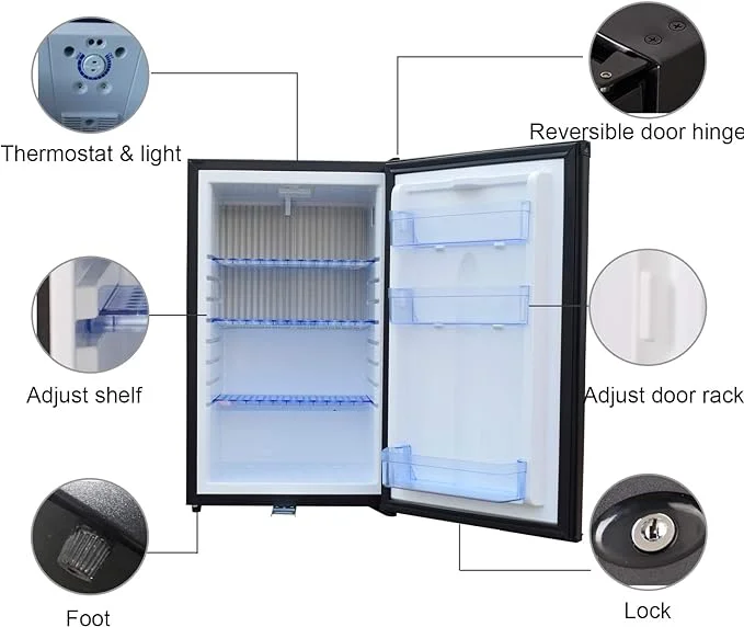 SMETA 1.7 Cu ft Portable Absorption Mini Fridge No Noise with Lock, Adjustable Foot, Reversible Door